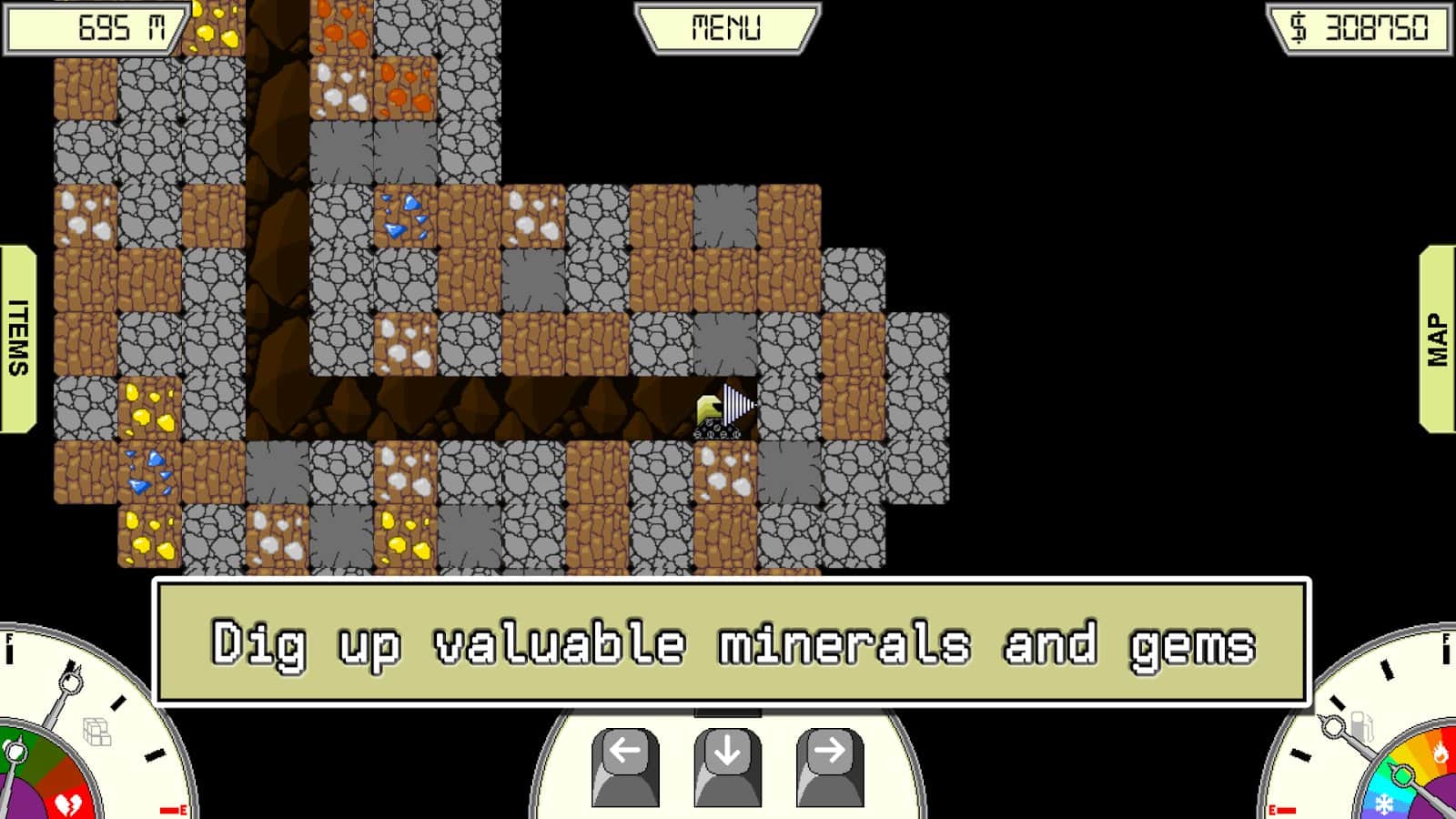 Miner - Приготовьтесь к приключениям под землей, в этой замечательной аркаде на андроид. Сверлите скважину под землей и ищите полезные ископаемые, ценных металлов и драгоценных камней. Покупайте и улучшайте оборудование, чтобы спустится все ниже и ниже. Вас ждет восемь различных ценных ископаемых, гигантская карта для раскопок, и около двадцати миссий.