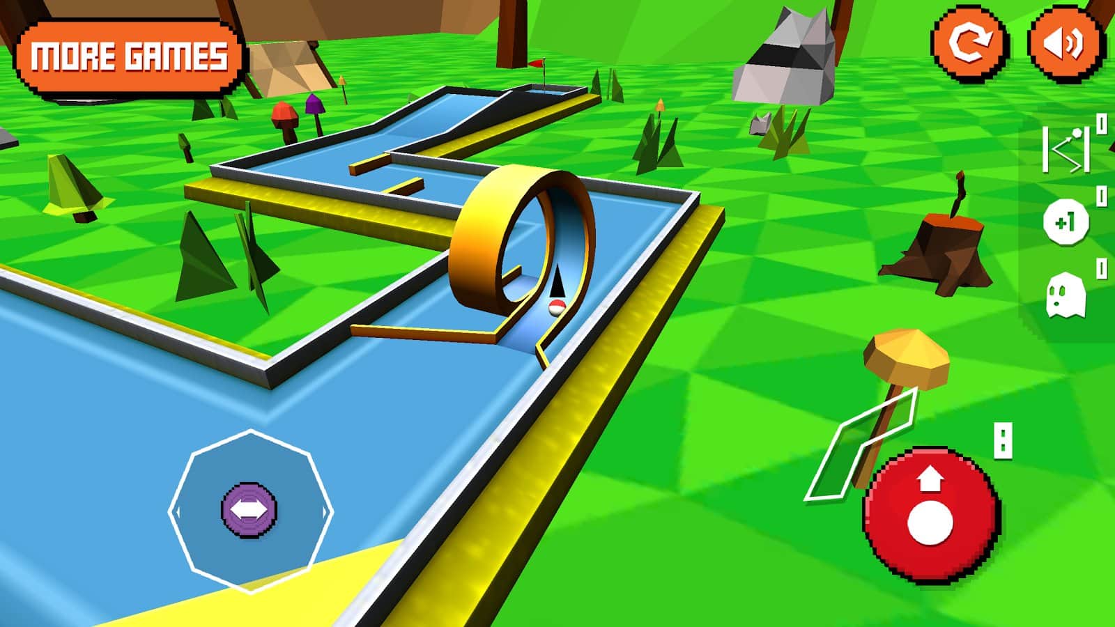 Mini Golf: Retro – гольф на андроид, с красивой графикой и новым подходом к игре. В этой игре вы отправитесь на красивые луга и будете бить по мечам, запуская их в запутанные лабиринты с множеством различных препятствий и пандусов. Точно рассчитывайте удары по мячу и направляйте его в нужном направлении, чтобы он не перелетел через бортики лабиринта. Игра полностью оптимизирована для мобильных устройств и планшетов, и буде превосходно работать на любых устройствах. Проходите уровни и набирайте достаточное количество очков, чтобы приобрести новые мячи и открыть дополнительные уровни.