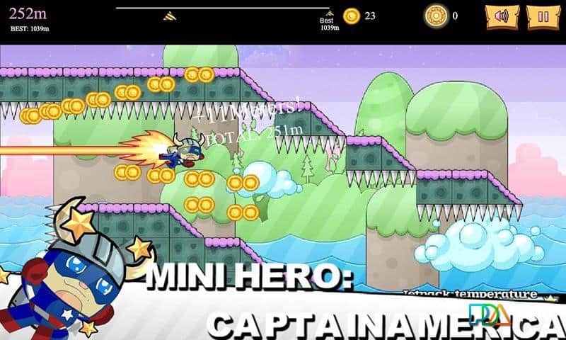 Mini hero - весёлая игра на андроид про супер героев, вернее их маленьких копий. Вас ждут Тор, Капитан Америка, Халк, Железный Человек и другие герои которые так полюбились большому количеству людей. Проходите уровни, собирайте монеты, на которые вы сможете модернизировать ваших героев. Отправляетесь в опасные приключения на протяжении нескольких уровней вместе со своими любимыми супер героями.