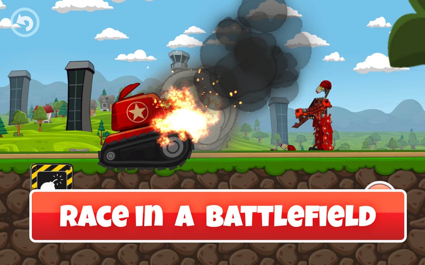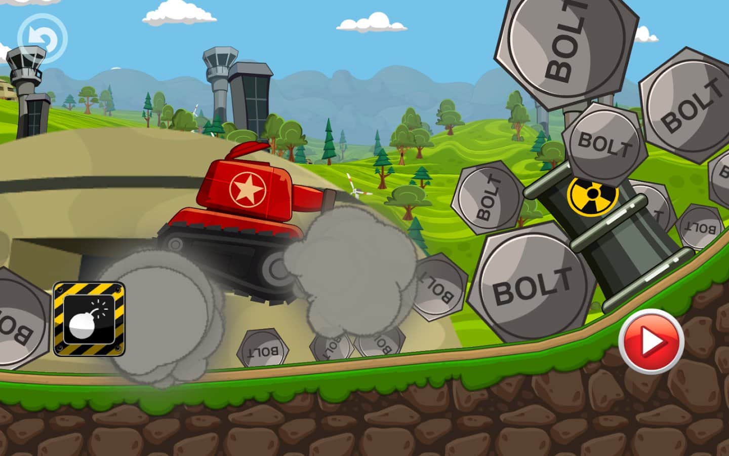 Mini Tanks World War Hero Race – гонки на танках по опасным трассам этой игры на андроид. Возьмите под свой контроль мини-танк и проведите его по всем уровням этой игры, заполненным многочисленными преградами и врагами. Разгоняйте свой танк до предельной скорости и тараньте все преграды на пути, проезжайте по разрушающемуся мосту и разрушайте небольшие строения. Въезжайте на крутые склоны, перепрыгивайте преграды и стреляйте по мишеням из своего оружия. Устанавливайте рекорд в этой игре и открывайте для себя новые танки и уровни. Всего в игре представлено 12 неповторяющихся уровней, 4 танков, а также игра порадует вас отличной физикой и простым управлением.