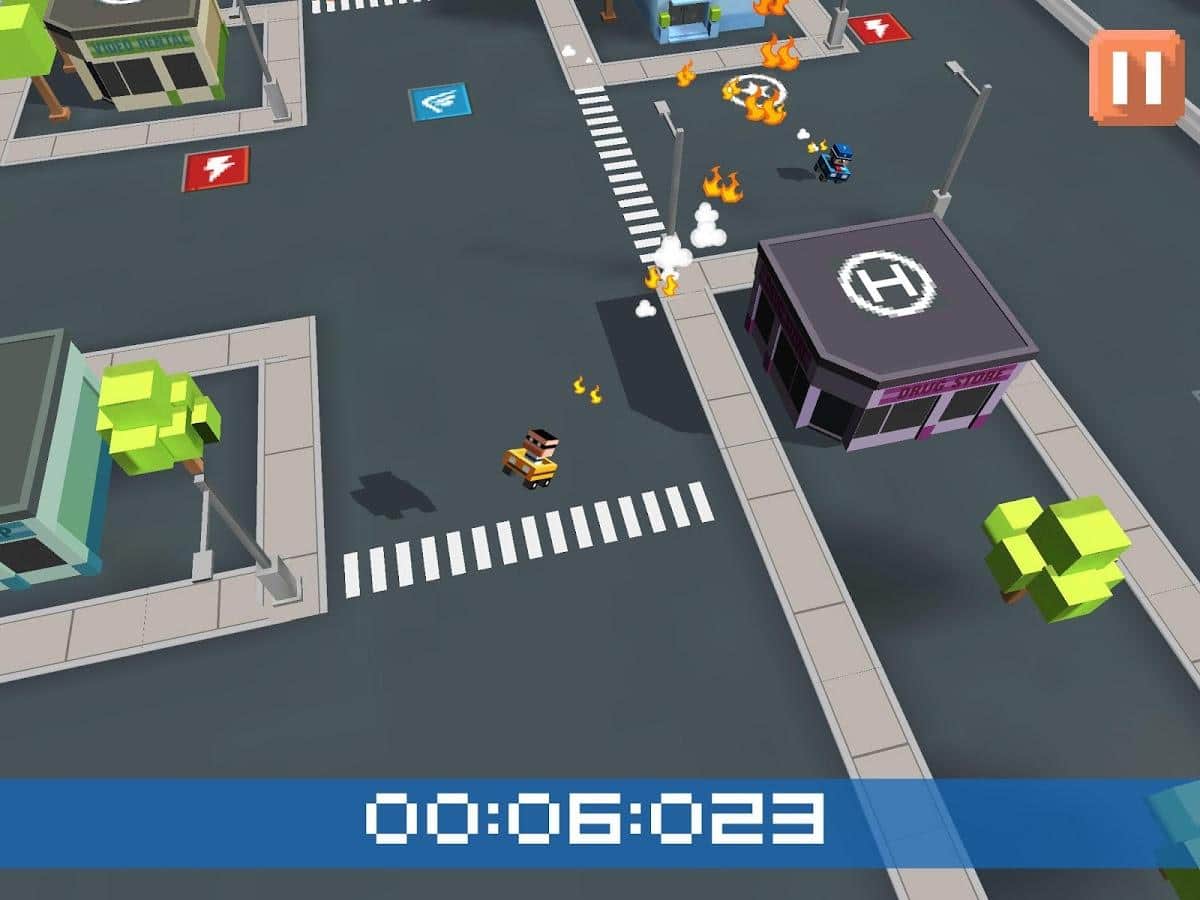 MiniChase - веселая игра в которой вам во что бы то не стало необходимо оторваться от преследования. Вы самый отчаянный человек в мире раз решили ограбить банк под носом у полицейских. И теперь вашей задачей будет оторваться от преследования и погони. Гоняйте на своем авто и совершайте опасные трюки для того чтобы вас не поймали и не посадили за решетку. Проверьте свои навыки в управление автомобилем и попробуйте избежать полицейского вертолета. Проверьте, как далеко вы сможете уехать на своем автомобиле и стать лидером в этой игре. Игра порадует вас мультяшной графикой и разнообразными опасностями и препятствиями на вашем пути.