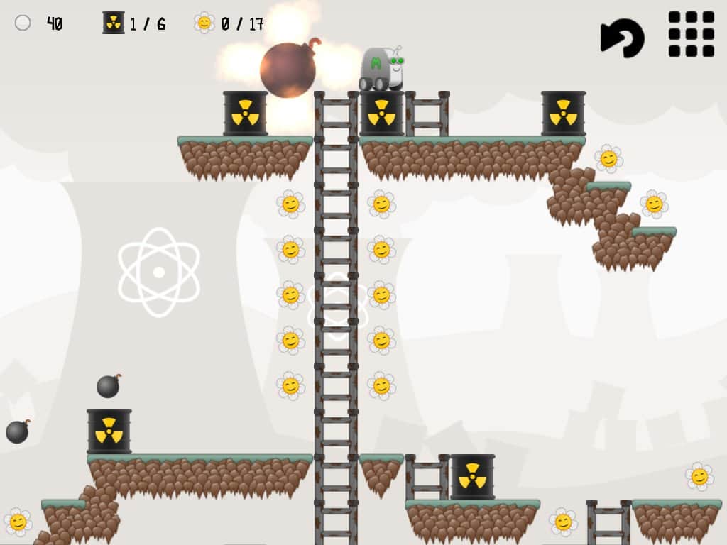 Minieens - эта игра не только научит вас продумывать ходы наперед, но так же и заботится о планете. Главный посыл этой игры в том что радиоактивные отходы заражают нашу землю, и вы как робот что очищает их будете работать не покладая рук, ну или антенок. Даже на самом первом уровне придется выложится на полную, ведь застряв один раз в тупике, обратно уже не выбраться. Уровней в игре довольно много и вы потратите уйму времени что бы пройти их все.