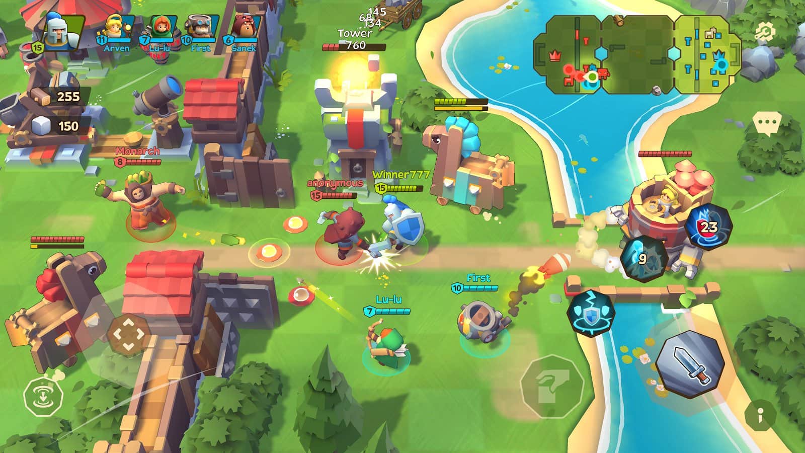 Геймплей- это как будто бравл старс клеш оф кленс и ласт дей, есть режим 5 на 5 и в нем надо собирать ресурсы чтобы строить и улучшать всякие катапульты, оружейники, и ратушу, главная цель сбить ратушу противника кто сделает это первым тот и выиграл, также в оружейнике(не помню как оно именно называется) можно покупать бойцов и каждый боец по своему хорош у одного урон больше а другой вообще дальник, там есть несколько персонажей и чтобы их использовать надо их получить в самой игре они покупаются за кресталы, в игре есть ещё много всякого но я не помещу все это в один отзыв