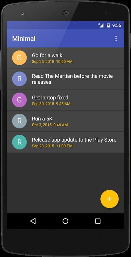 Любители минимализма могут обратить внимание на данный менеджер задач с говорящим названием. Его функциональность проста до безумия: создание заметок с напоминаниями. Настройки тоже скудны: есть переключение на темную тему оформления. Здесь нет ни виджетов, ни синхронизации с облаком, ни возможности расшаривать свои напоминания, но именно эта лаконичность делает программу простой в использовании и привлекает все больше пользователей.