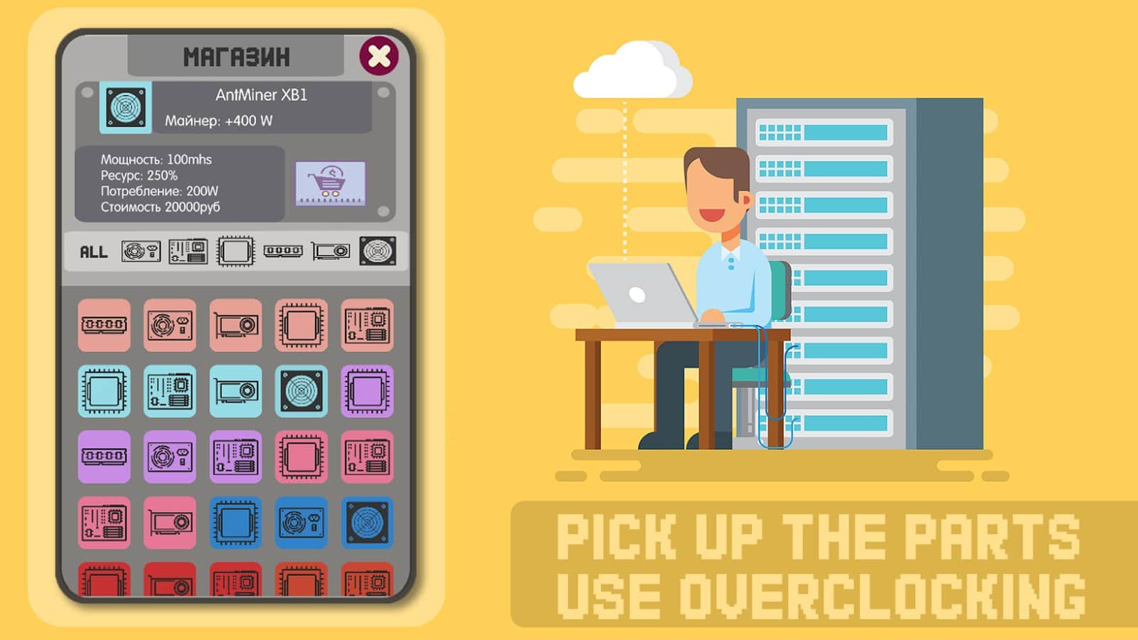 Mining simulator - business game – захватывающая игра где вы будете создавать свою майнинговую ферму и добывать крипто валюту. В этом симуляторе вы построите свою ферму из предложенных компонентов и деталей и сможете добывать крипто валюту. Прокачивайте и увеличивайте свои мощности, покупайте новые детали и фермы и получайте отличный заработок. Соревнуйтесь с друзьями и станьте лучшим. Управляйте своими деньгами на бирже и создайте свой бизнес по продаже деталей. Вычисляйте хакеров и обходите их атаки. Обменивайте валюту и создайте мега ферму.