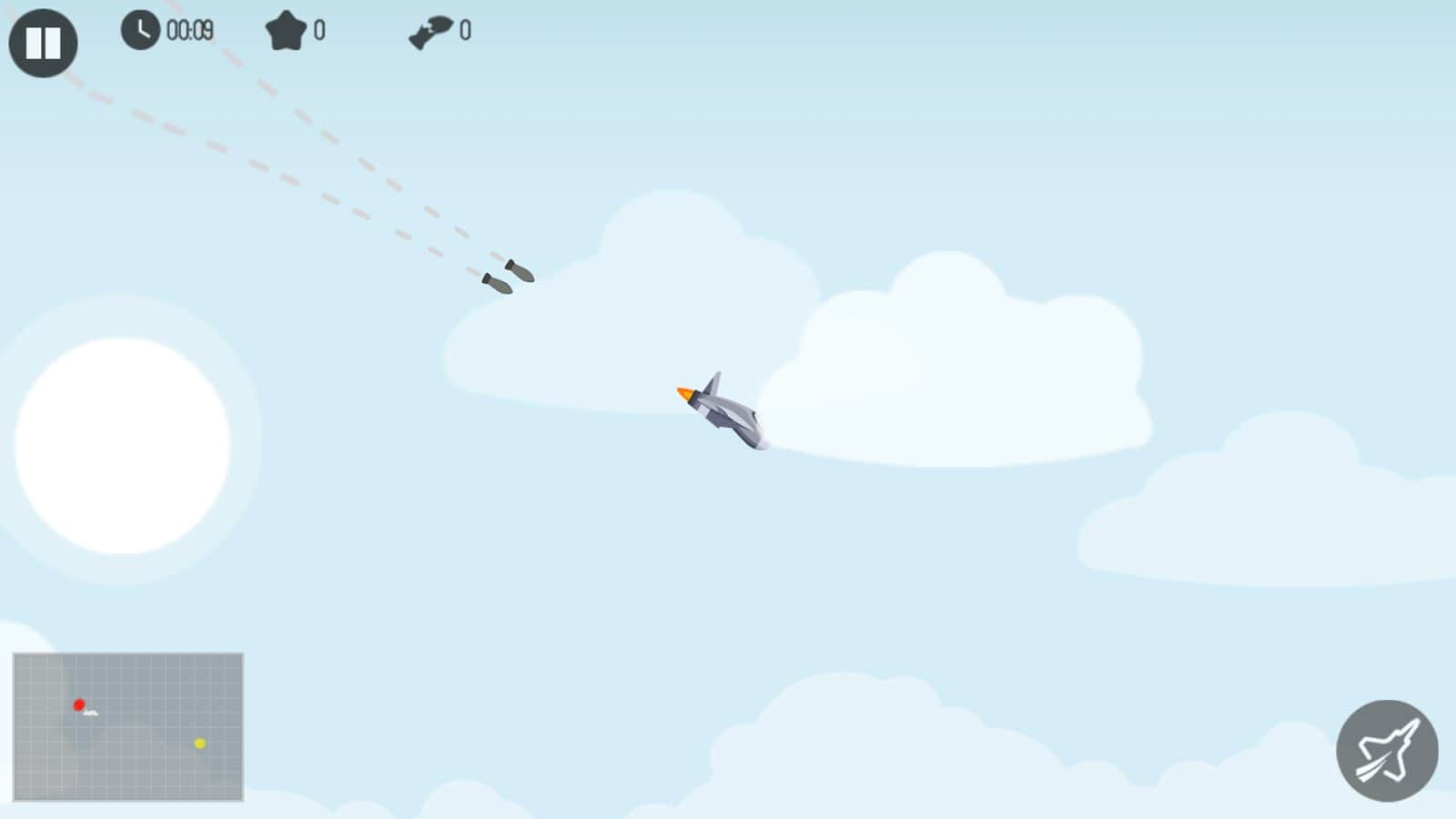 Missiles Again - Интересная аркада в которой ты будешь играть пилотом самолета. Тебе нужно будет уклонятся от ракет выпушеных с базы противника. Уклоняйся как можно дольше и собирай звезды, они тебе пригодятся!