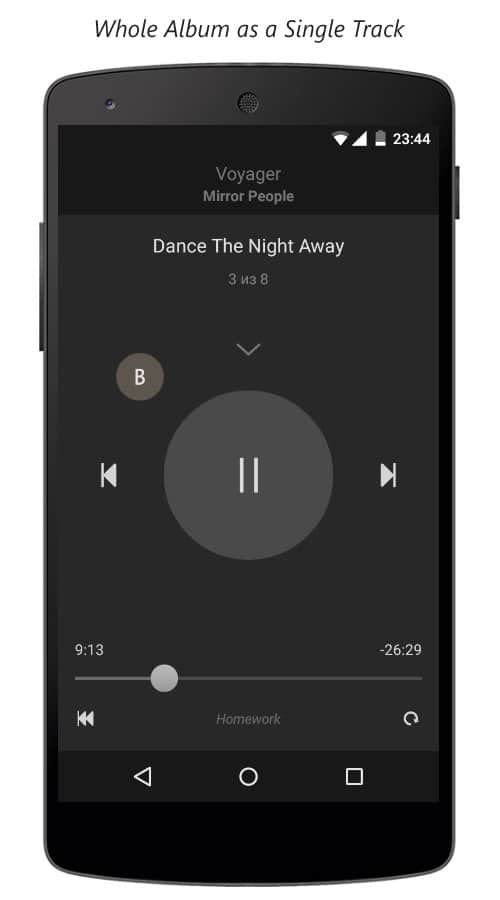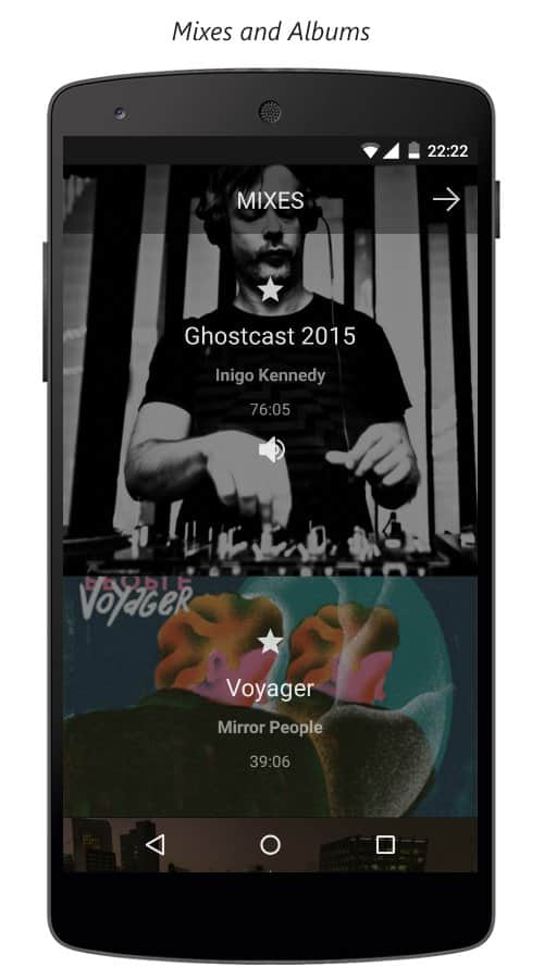 Mixes – приложение, представляющее собой музыкальный плеер с простым и понятным дизайном для любителей прослушивания миксов, микстейпов, подкастов и других длинных треков. Стоит отметить, что Mixes проигрывает треки длиной не более 15 минут, имеет точную перемотку как вперед, так и назад для миксов - 90 секунд, для подкастов – 30 секунд. Есть режим усиления баса для миксов и режим выделения речи для подкастов.