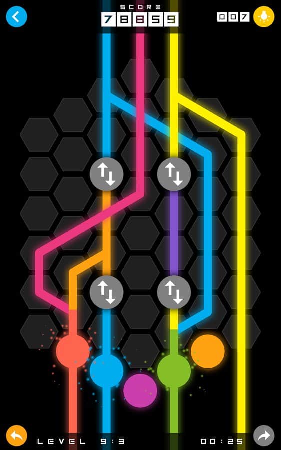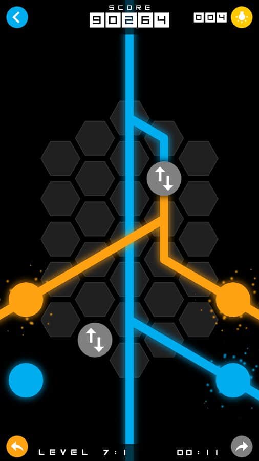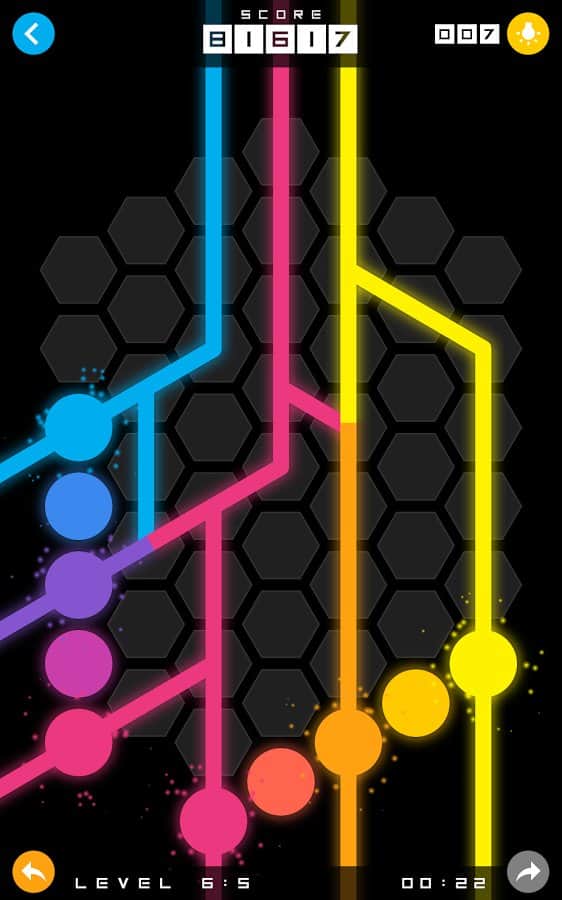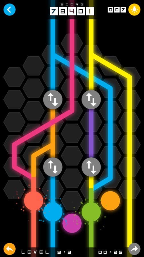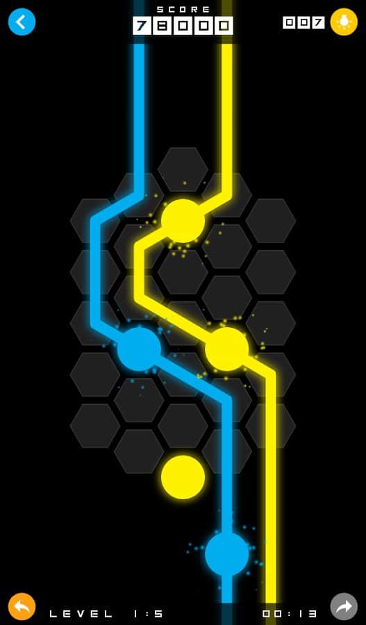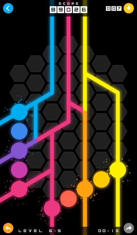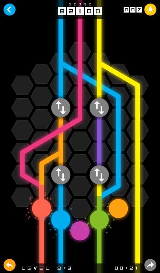 Mixit – увлекательная головоломка на андроид, где вам предстоит соединять разноцветные точки линиями. В этой игре перед вами откроется поле, состоящее из шестиугольных ячеек, на которых расположены точки разных цветов. Вашей задачей будет соединить точки линиями того же цвета для того чтобы пройти уровень. Решайте нестандартные задачки и соединяйте линии между собой для того чтобы получить совершенно новый цвет. Прилагайте всю свою наблюдательность и логику, чтобы пройти уровень и перейти на следующий. С каждым новым уровнем сложность игры будет увеличиваться и вам придется изрядно потрудиться чтобы пройти игру. Игра порадует вас 80 уровнями и яркой неоновой графикой.