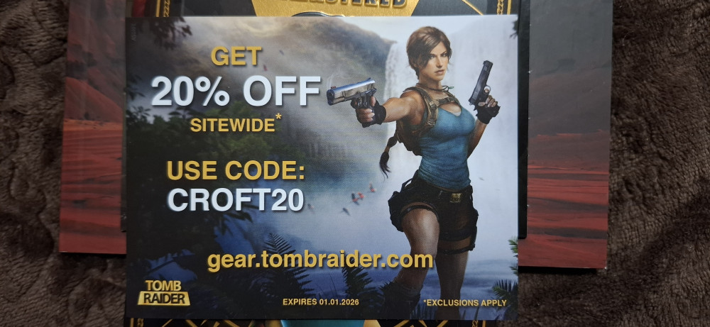 Ну, и в завершение - основная причина покупки делюкс-издания. Книга с картами. Сразу скажу - поскупились, переплёт мягкий, но сама книжка внутри очень красивая, содержит карты со всеми ходами, рычагами, ключами, подсказками, красивыми артами. Ориентироваться вроде можно, надо будет затестить в реальных условиях. Фотографировать долго, там лучше сканы сделать и выложить. Последняя штучка-сувенир - бесполезный и истекший уже на момент заказа промокод на 20% скидку на мерч. Оставил просто на память, сама карточка прикольная