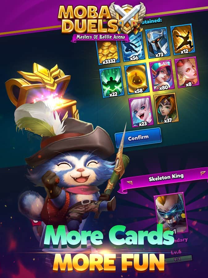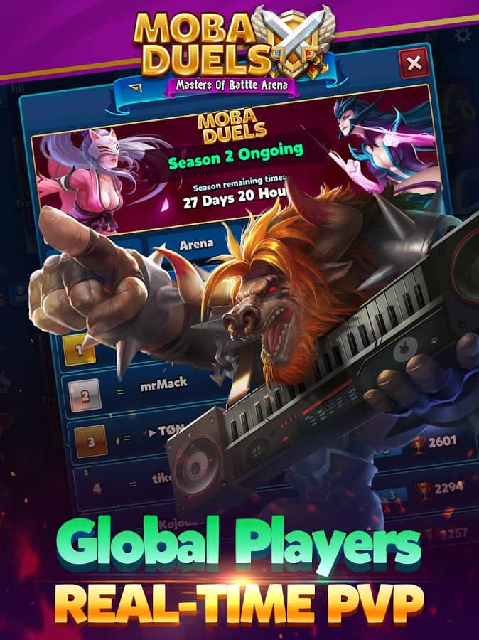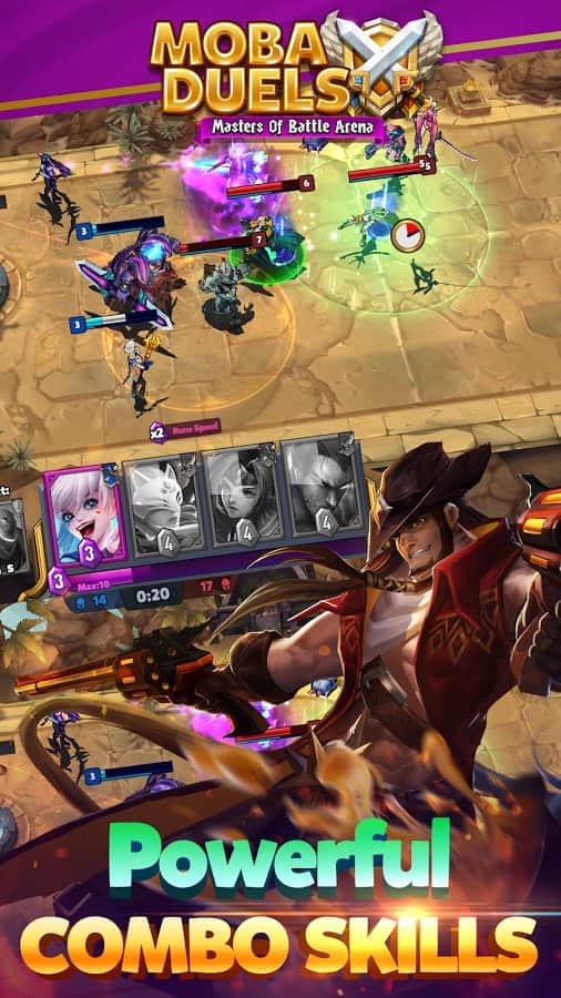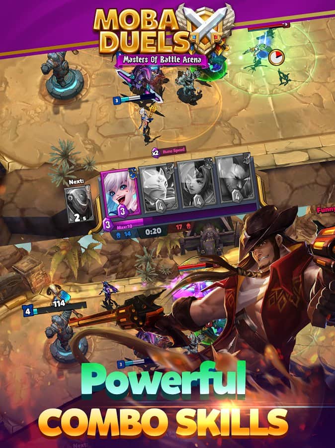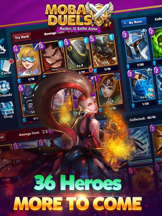 MOBA Duels - Masters Of Battle Arena - в этой игре перед вам предстанет весьма непростая задача, вам нужно уничтожить базу врага и при этом не потерять свою. Для этого у вас будет целый набор различных карт что призывает героев или же воинов, у каждого вида войск свои собственные показатели атаки, защиты и многого другого так же и у героев. Сражаться предстоит с реальными игроками так что построение колоды персонажей и всей стратегии игры очень важно.