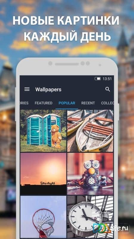 Можно перерыть весь интернет в поисках интересных обоев и не найти ничего подходящего, а можно установить одно приложение, где все удобно сортировано по коллекциям и скачивать оттуда себе новые картинки хоть каждый день.