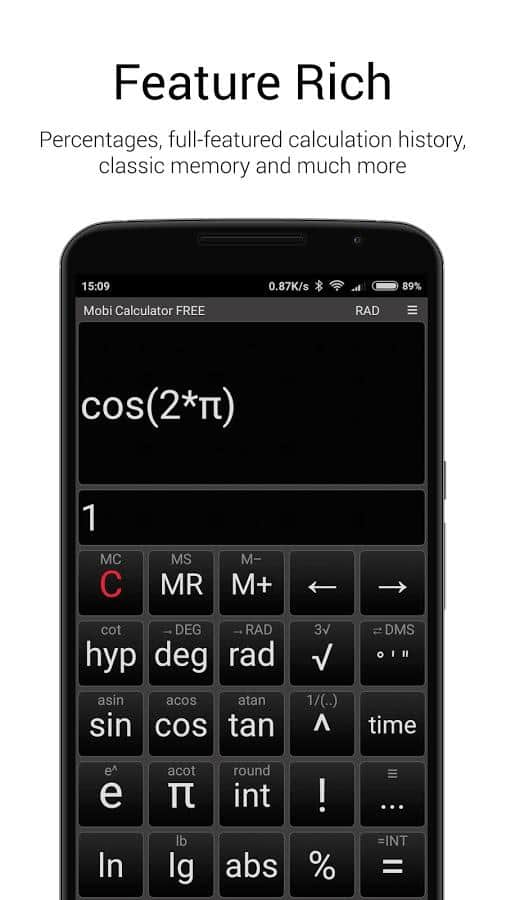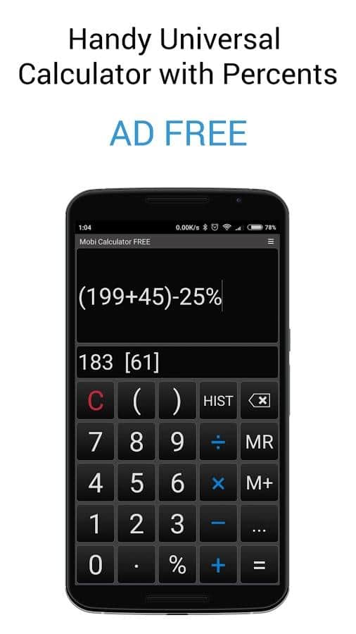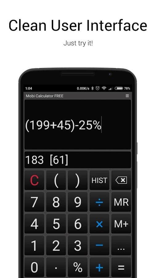 Mobi Calculato - удобный и универсальный калькулятор для Андроид устройств. Простой и лаконичный дизайн, многофункциональность и большое количество вычислительных функций могут с расчётами с любое время.