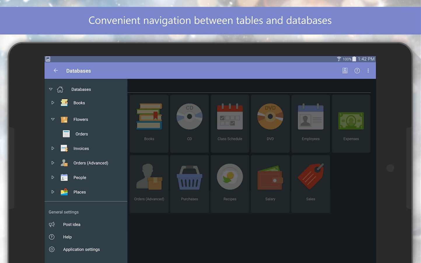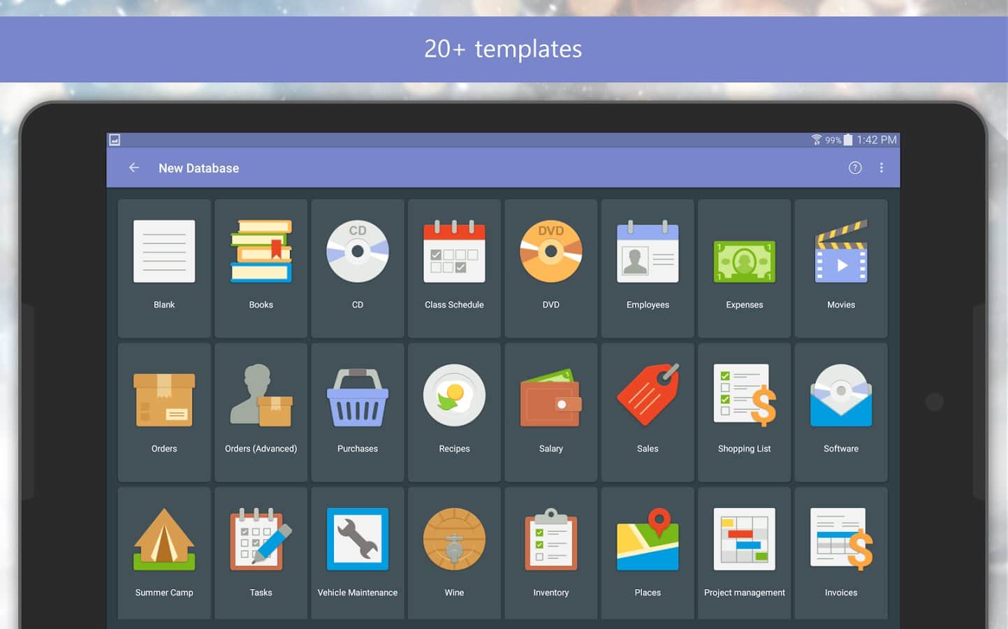 Mobi DB - программа для андроид для хранения всех персональных данных в одном месте. Позволяет хранить списки задач, CD/DVD коллекции, книги, рецепты, списки покупок, расходы и пр. Основные характеристики программы: