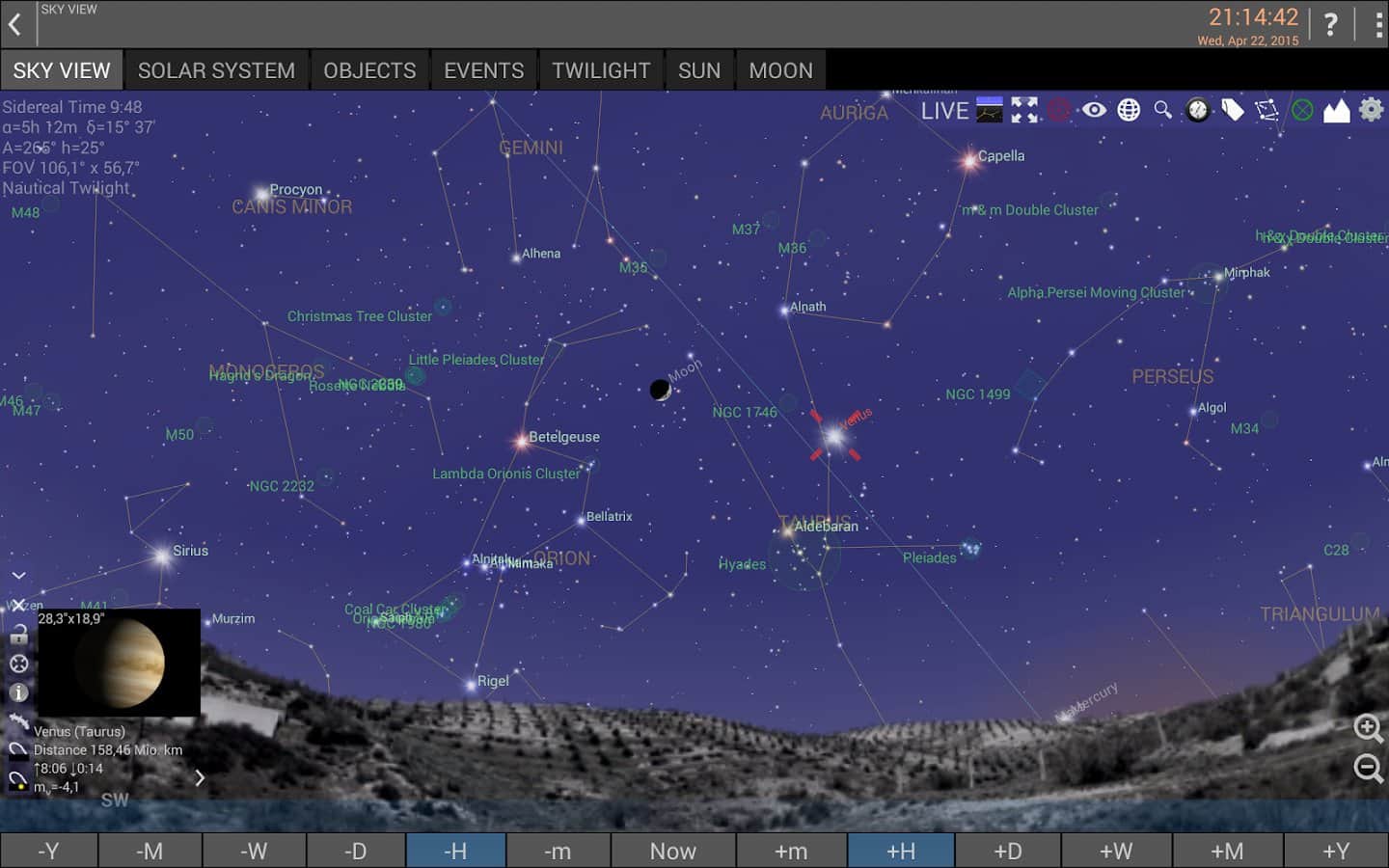 - Live режим (устройство точки на небе и получить информацию о том, что вы смотрите)