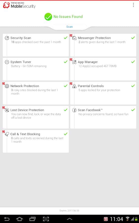 Mobile Security Personal Edition – надежная защита для вашего андроид устройства от разработчиков Trend Micro. Из основных характеристик, по мимо защиты от вирусов, можно выделить следующие моменты: небольшой вес, экономичность в расходовании батареи, блокирование небезопасных интернет-страниц. К тому же у вас есть 30 дней для ознакомления с данным приложением абсолютно бесплатно.