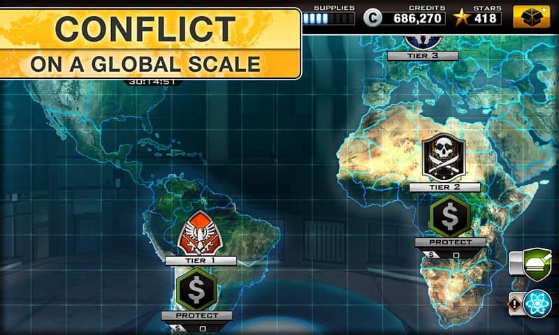 Modern Command - стратегия на андроид, в которой вам предстоит построить самую современную базу для того чтобы предотвратить угрозу со стороны террористов. Для постройки базы вам будут даваться самые современные технологии и оружие. Начните борьбу против армии врагов, которые угрожают вам и вашей стране из Южной Америке, Африке, Европе, Азии. Развивайте свою стратегию, применяйте новые средства защиты, а также выполняйте различные миссии, возложенные на вас. Объединяйте свои усилия с друзьями и увеличивайте свои силы.