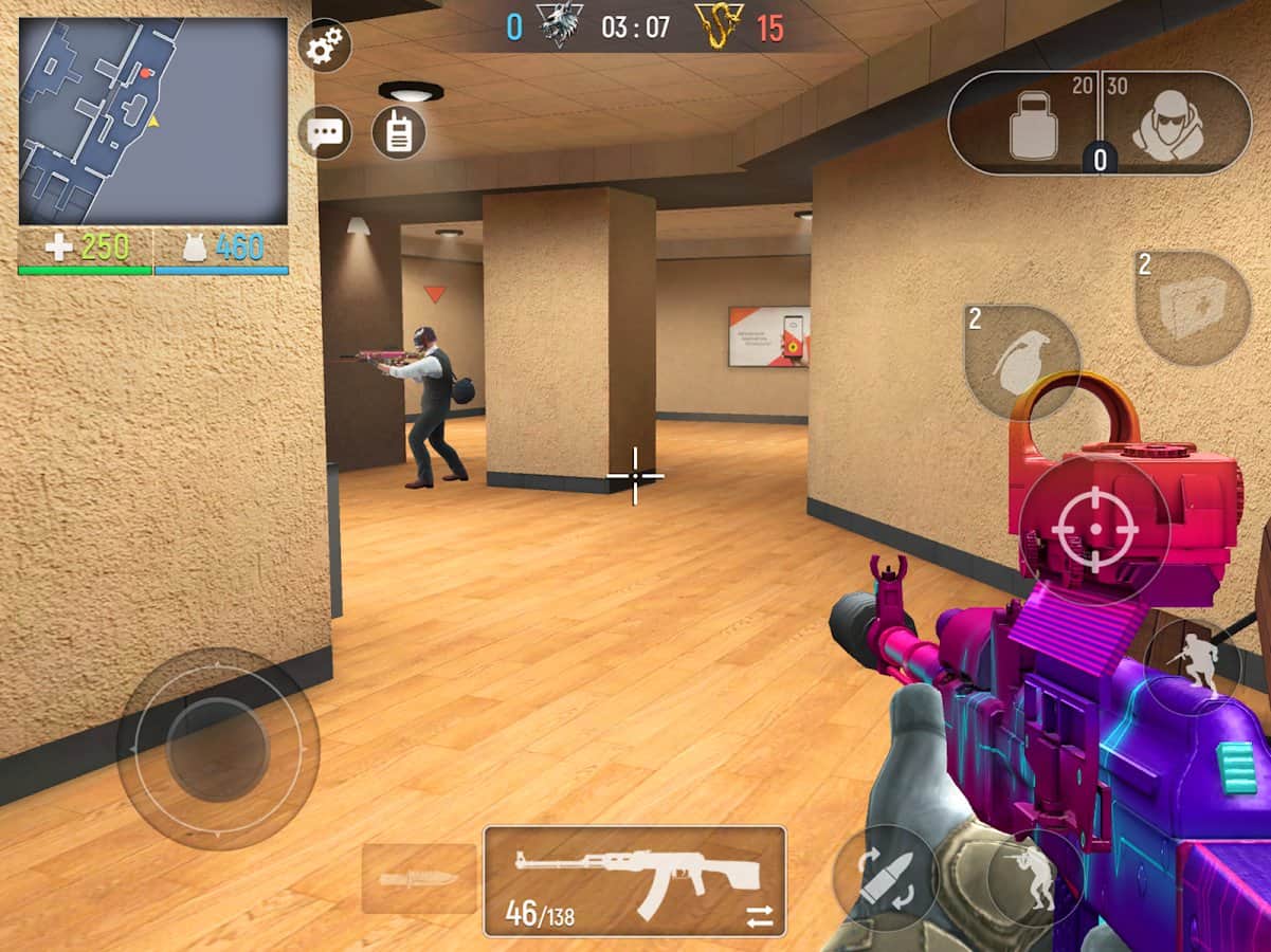 Modern Ops - Online FPS – многопользовательский онлайн шутер на андроид, с динамичным командным геймплеем. Возьмите под свой контроль героя и подберите для него уникальный внешний вид используя многочисленные скины, оружие, маски и броню. В этой игре вы сможете играть за копов пытаясь остановить боевиков или встать на сторону плохих парней и противостоять спецназу. Станьте лучшим бойцом в этой игре и поднимитесь на самый верх таблицы лидеров. Игра порадует игроков отличной 3D графикой и простым интуитивно понятным управлением. Выбирайте себе оружие из 30 видов современного и мощного оружия и победите всех врагов.