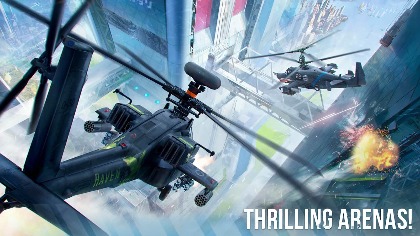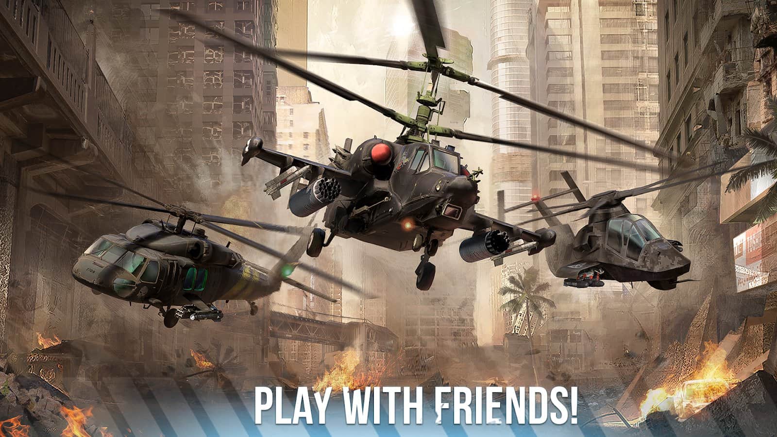 Modern War Choppers: Wargame Shooter PvP Warfare – красочный экшен на андроид, где вы будете управлять военным самолетам и летать по многочисленным локациям. Выбирайте себе военный самолет или вертолет и выполняйте многочисленные боевые вылеты уничтожая поставленные цели. Садитесь в кабину вертолета и почувствуйте себя пилотом, которому необходимо проникнуть на вражескую территорию и уничтожить военную базу врага. Играйте с игроками со всего мира или сражайтесь в оффлайн режиме на выживание. Получайте награды за успешно пройденные миссии и открывайте для себя новые самолеты. Усовершенствуйте свой вертолет или самолет приобретая на него новые пушки, ракеты и испробуйте все это на деле.