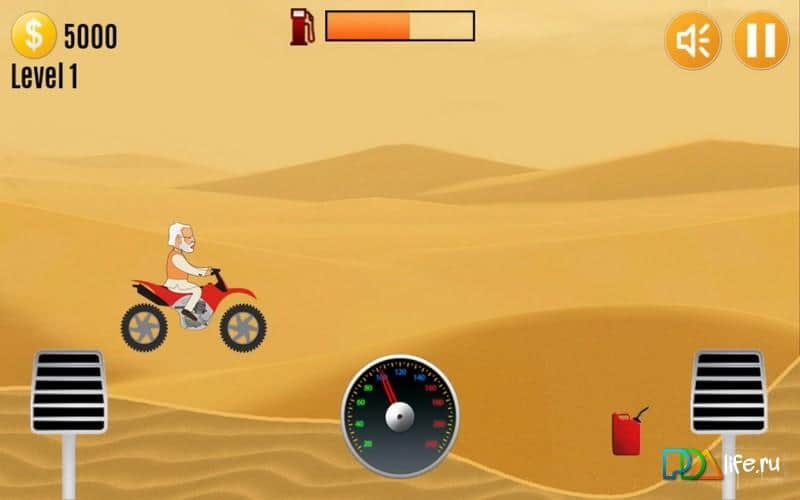 Modi Hill Climb - аркадные гонки на андроид, где вы будете управлять своим байком катаясь по холмистой местности. Водителем байка является индийский политик Моди, он сел за руль мотоцикла и пытается преодолеть все препятствия, чтобы победить на ближайших выборах, помогите ему в этом. Ездите по холмам и пустыням, а также проделывайте различные трюки и сальто для получения максимального количества очков.