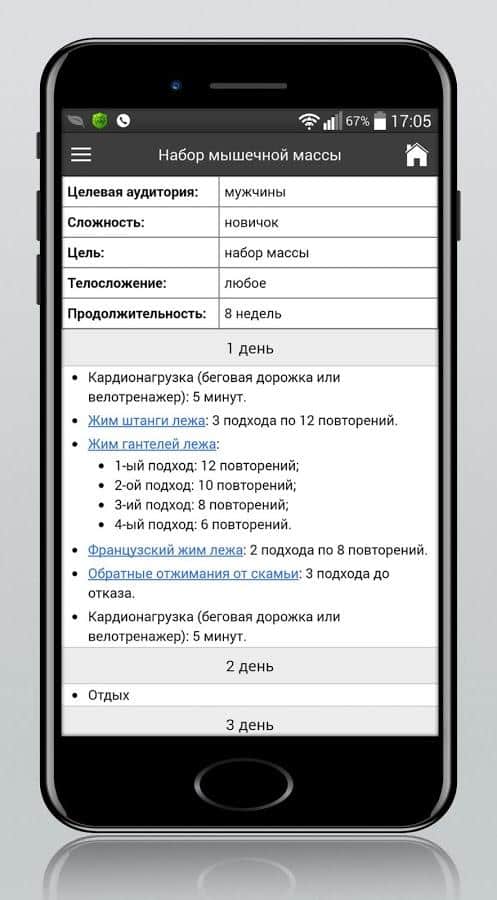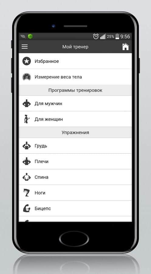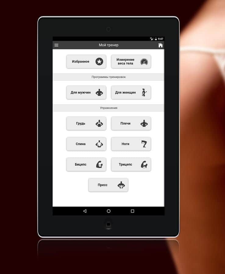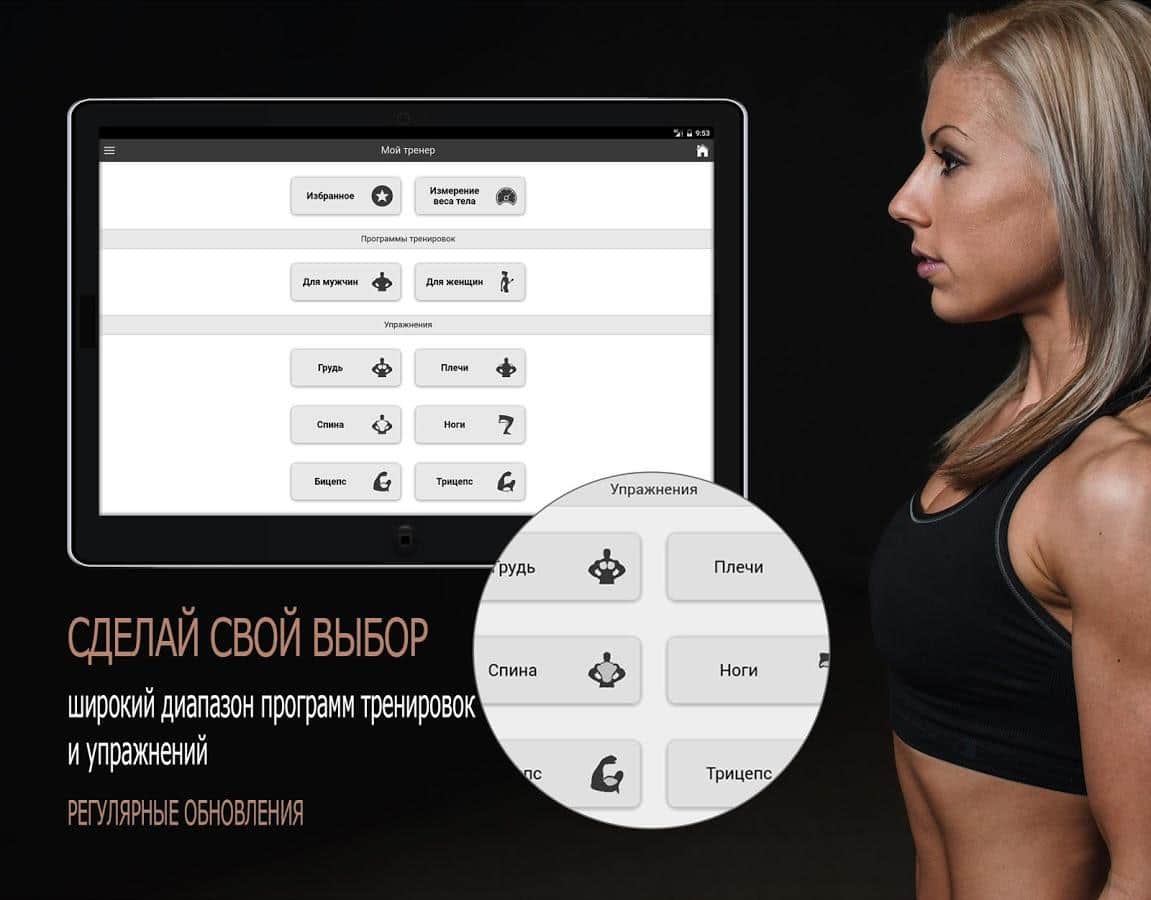 Мой тренер - Вам больше не нужно ходить в спортзал, и переплачивать тренеру за помощь. Теперь ваш личный тренер всегда будет с вами. При помощи этого простого приложения, вы без труда сможете следить за своими тренировками, получать индивидуальный график и полные пояснения к упражнениям. Множество упражнений сопровождаются графическими материалами, которые помогут вам выполнять их правильно. Следите за ходом своих тренировок, и получайте взамен красивое и накаченное тело.