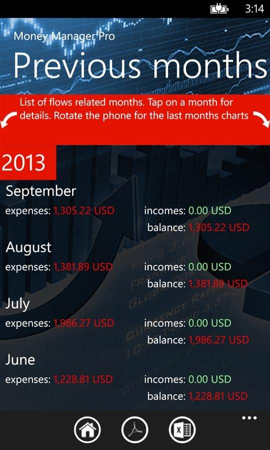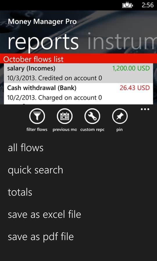 Money Manager Pro - приложение для windows phone, которое поможет вам управлять вашими денежными потоками. Теперь вы легко сможете отследить все ваши расходы за нужный вам промежуток времени.