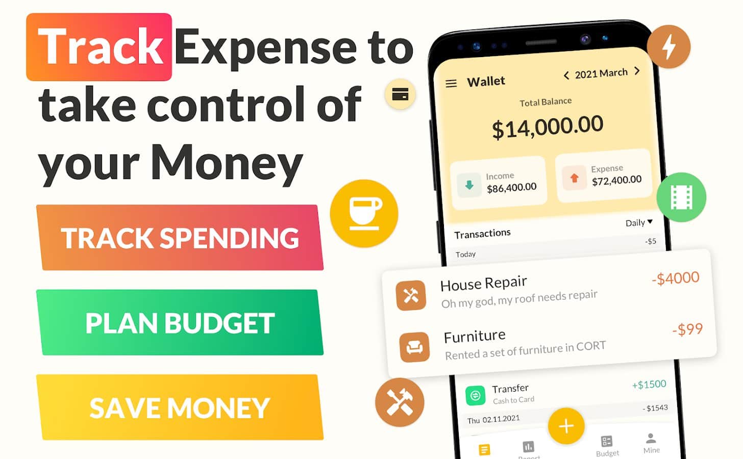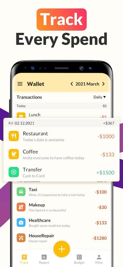 Ищете легкий и удобный способ отслеживать свои финансы и составлять бюджет? Тогда вашим верным спутником станет Money Tracker: Expense Tracker. Независимо от того, хотите ли вы контролировать расходы, следить за доходами или планировать бюджет, это приложение покажет вам путь к финансовой грамотности. Отслеживайте расходы и доходы с легкостью с помощью интуитивного средства отслеживания расходов вы сможете в режиме реального времени видеть, куда уходят ваши деньги и какие доходы поступают.