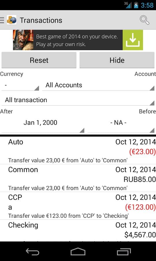 Money2015 - отличная программа для учета доходов и расходов. Ваши платежи будут классифицированы по категориям, поддерживается история по нескольким счетам и в разных валютах. Платежи по категориям для удобства выделяются цветом. Поддержка создания разных отчетов и диаграмм, синхронизации с сервером, перевод средств с одного счета на другой. Очень удобно и просто.