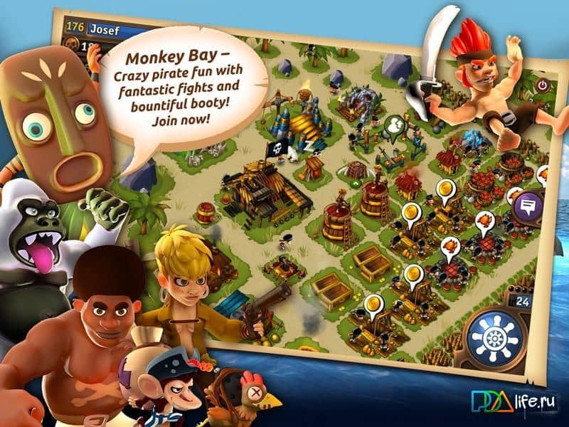 Monkey Bay - увлекательная игра на андроид, которая сочетает в себе смесь стратегии с элементами Tower Defense. В этой игре вы отправитесь в увлекательное путешествие на таинственный остров посреди океана, который вам предстоит превратить в убежище пиратов. Используйте неповторимые особенности этой игры, чтобы создать уникальный остров с собственными пиратами, защитными башнями, тавернами, шахтами и мастерскими по изготовлению пушечных ядер. Защищайте свои острова от нападения на них других пиратов и зомби, которые будут атаковать вас с разных огневых точек. Но также не забывайте что лучшая защита - это нападение, предотвратите атаки врагов, напав на их остров первым. Покажите в этой игре все ваши стратегические навыки по строительству и обороне своего острова.