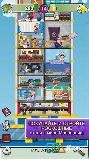 MONOPOLY Hotels - Новая онлайн игра в линейки игр монополии на андроид! В этой версии игры вам нужно управлять отелями: покупайте, стройте, улучшайте … делайте все чтобы стать настоящим отельным магнатом! В каждом строении для увеличения прибыли можно строить различные магазины и развлекательные комплексы. Создайте свою собственную отельную империю!