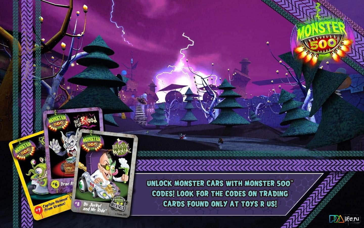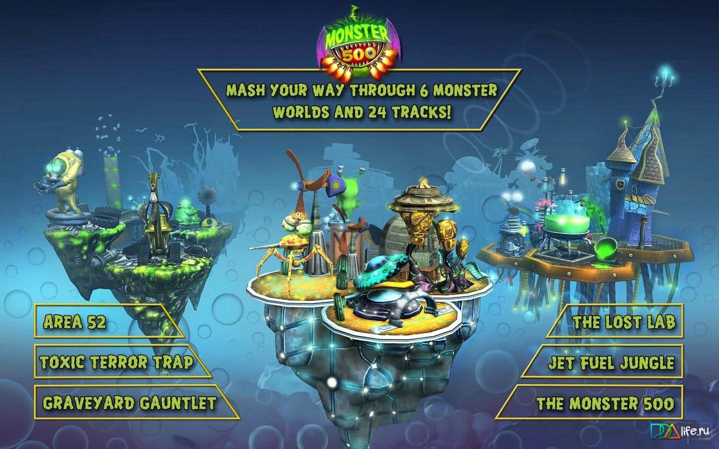 MONSTER 500 - Сумасшедшие андроид гонки на движке Unreal Engine 3 с монстрами и оружием. Пришло время узнать кто первый, а кто последний. Вам нужно проехать самые различные трассы и локации, начиная от токсичного мира, и заканчивая кладбищем. В игре три различных режима для гонок: чемпионат, быстрая гонка и сетевая игра.