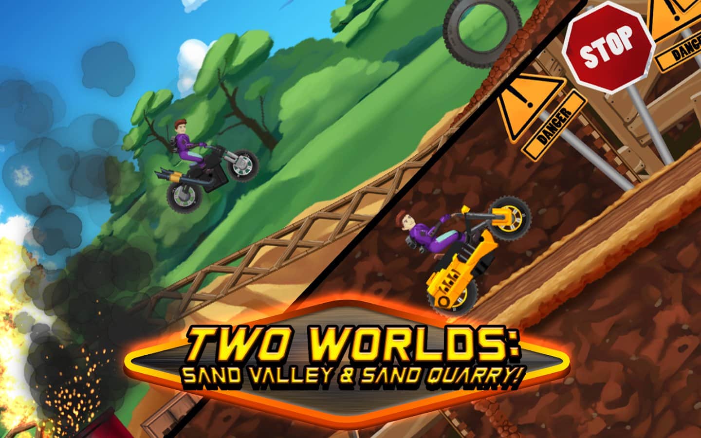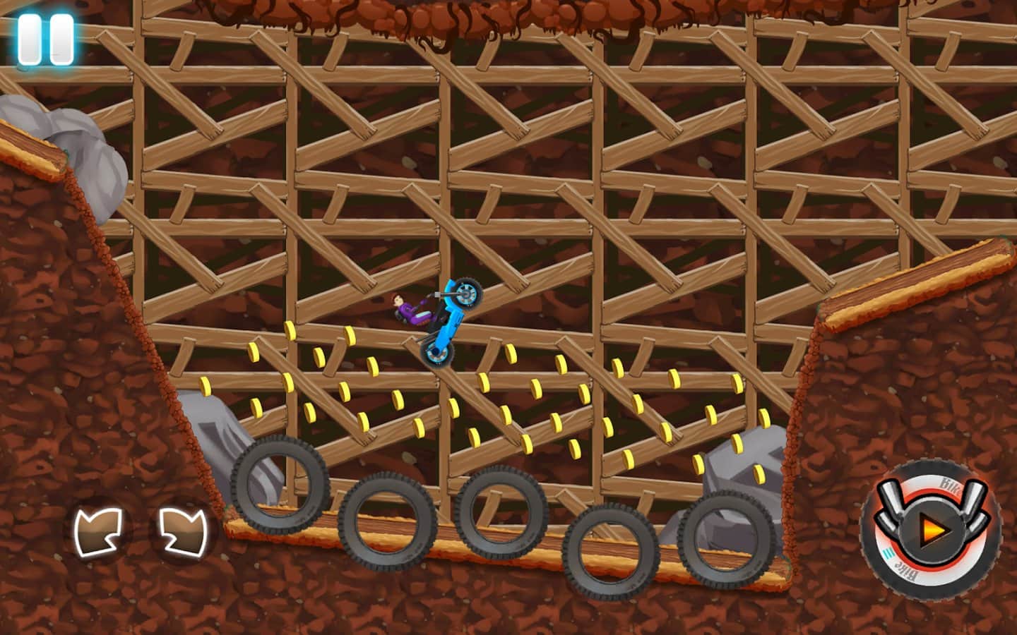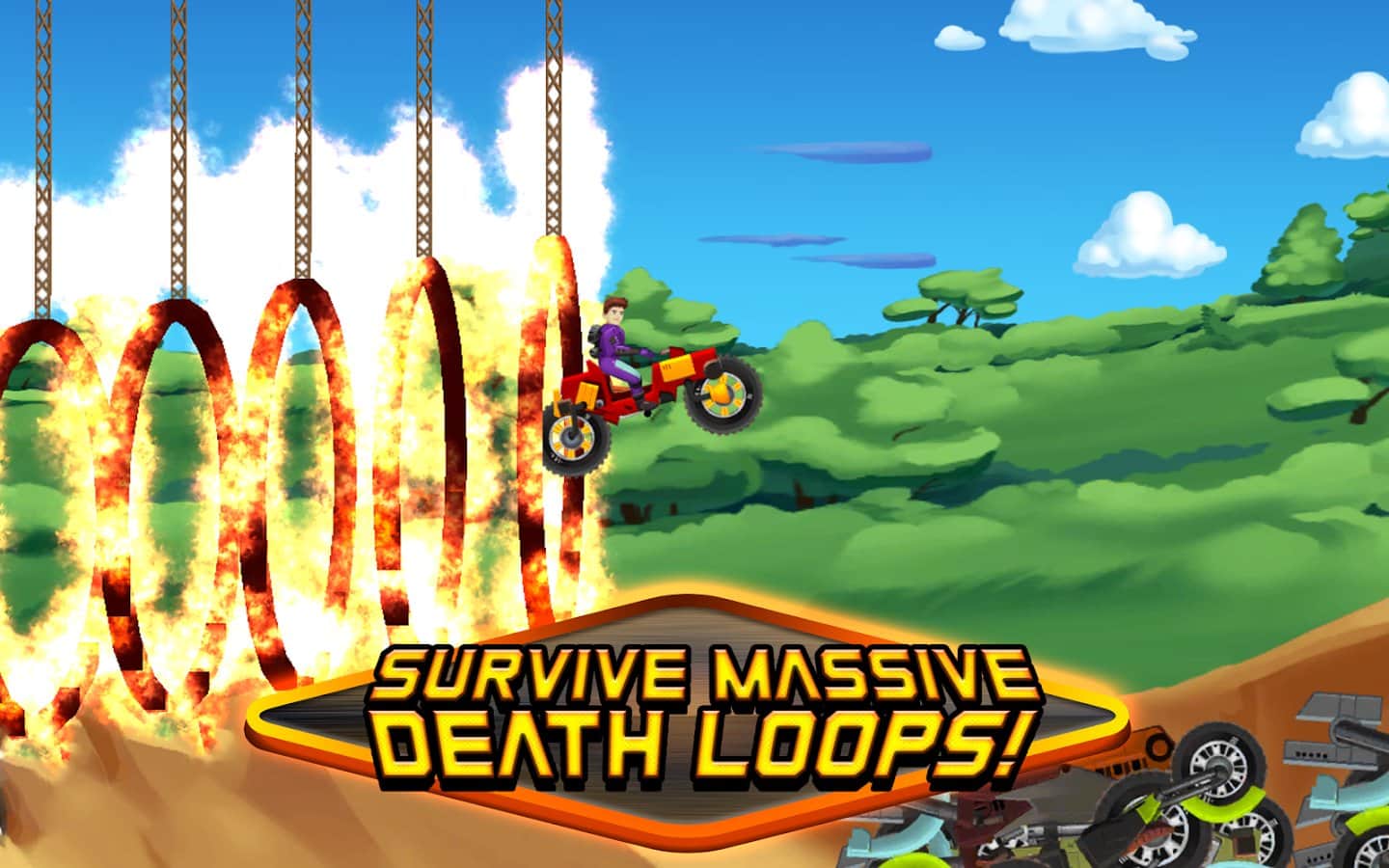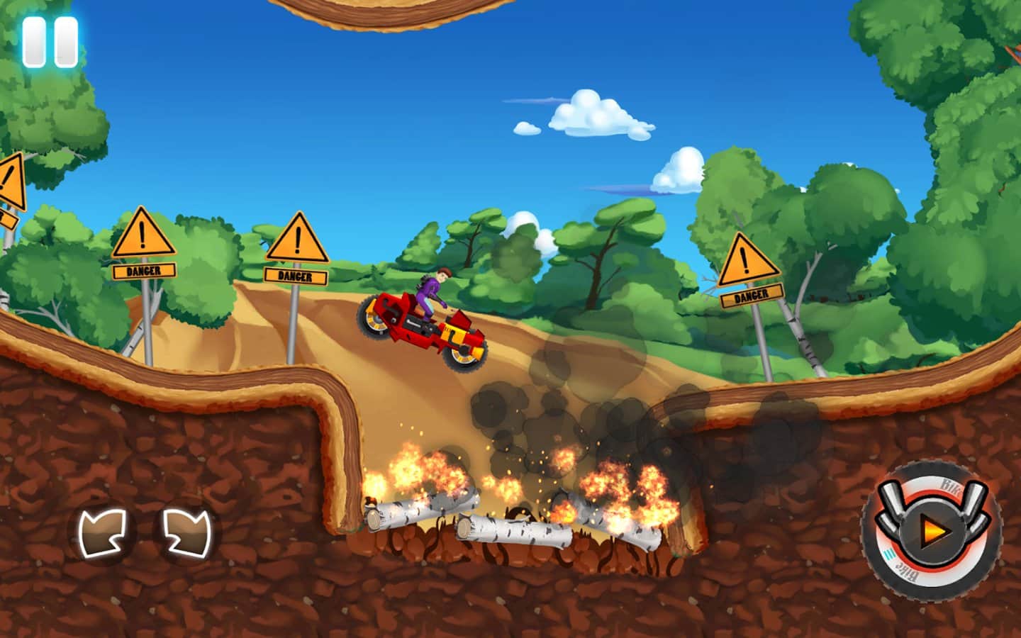 Monster Bike Motocross – садитесь за руль мощного мотоцикла и проведите его по опасным трассам игры. Приготовьтесь к экстремальным испытаниям, где вы будете гонять на огромной скорости по мертвым петлям, подпрыгивать вверх на трамплинах и проезжать по узким туннелям. Проезжайте над пропастями и ямами и получайте ценные призы и награды за пройденные уровни. Открывайте для себя новые мотоциклы, которые будут иметь уникальный внешний вид и порадуют вас своими характеристиками.