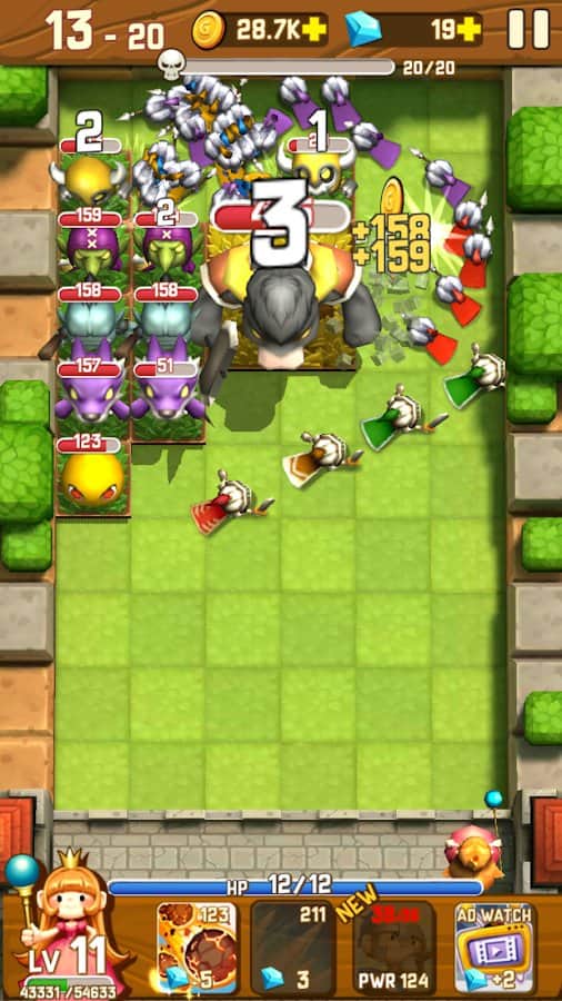 Monster Breaker Hero – игра на андроид, где вы возьмете под свой контроль отважную принцессу и дадите отпор монстрам атакующим ваш замок. Эта игра отдаленно напоминает всем известную игру арканоид. В этой игре вы будете управлять принцессой, которая обладает огромной силой и способна в одиночку одолеть сильных монстров. Нажимайте на экран своего телефона или планшета и отправляйте в направлении монстров и врагов армию героев, которые будет единой линией атаковать врагов и отскакивать от стен. Разрушайте все на своем пути и не дайте врагам одержать победу. Прокачивайте и улучшайте свою принцессу, наделяя ее новыми возможностями и умениями. Разбивайте все кирпичики и добейтесь отличных результатов.