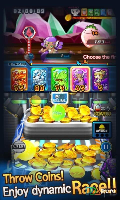 Monster Coin Racer(Global) – увлекательная игра на андроид, где вашей главной задачей будет собрать свою коллекцию монстров и принять участие в гонках. Каждый герой в этой игре обладает уникальными способностями и поможет привести вашу команду к победе. Управляйте своей командой и развивайте ее способности, добиваясь рекордных результатов. Заработанные в соревнованиях деньги вы сможете потратить на приобретение новых милых монстров, бросая монетки в игровой автомат и выигрывая нового героя. Бросайте вызов сильнейшим игрокам со всего мира и участвуйте с ними в стремительных гонках, получая за победу ценные призы.