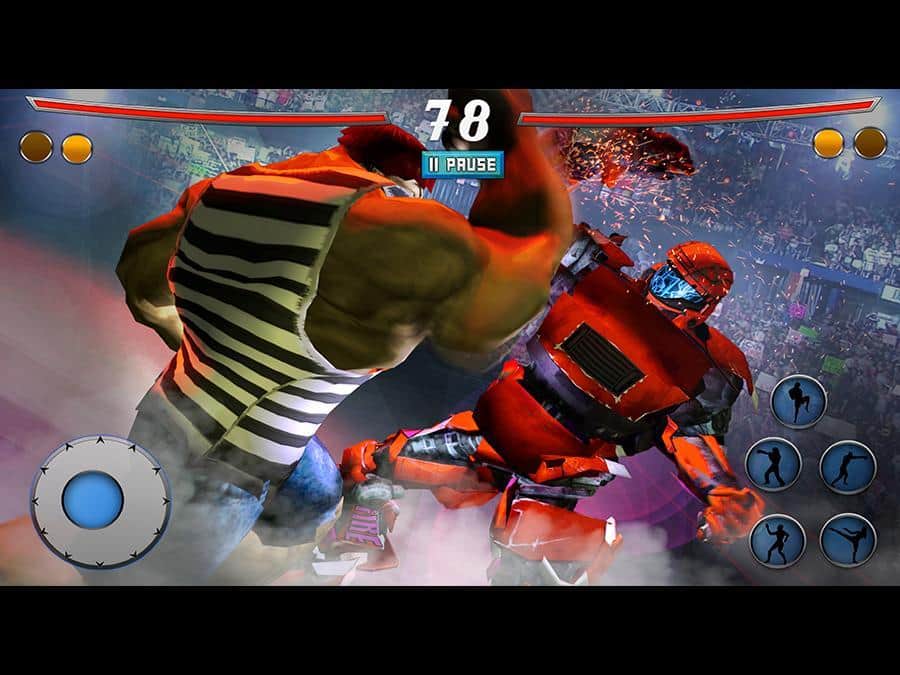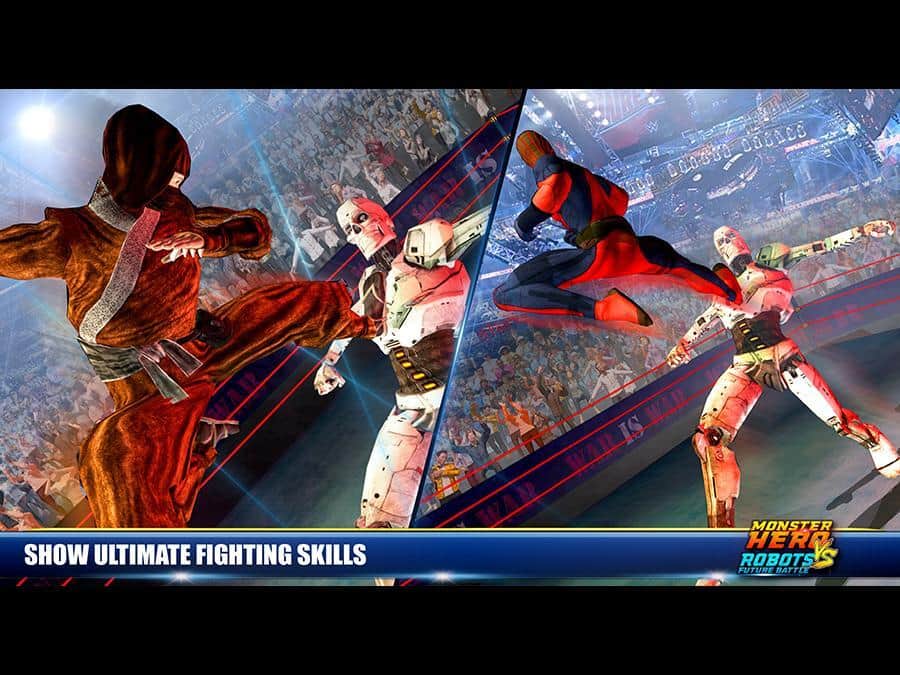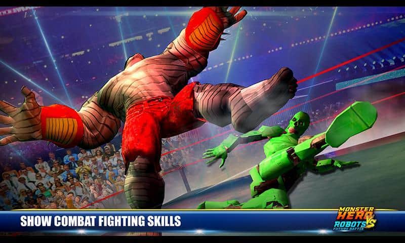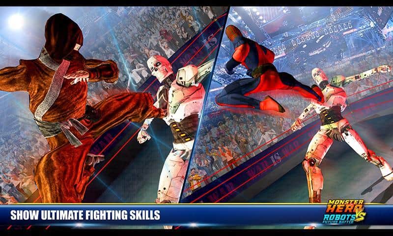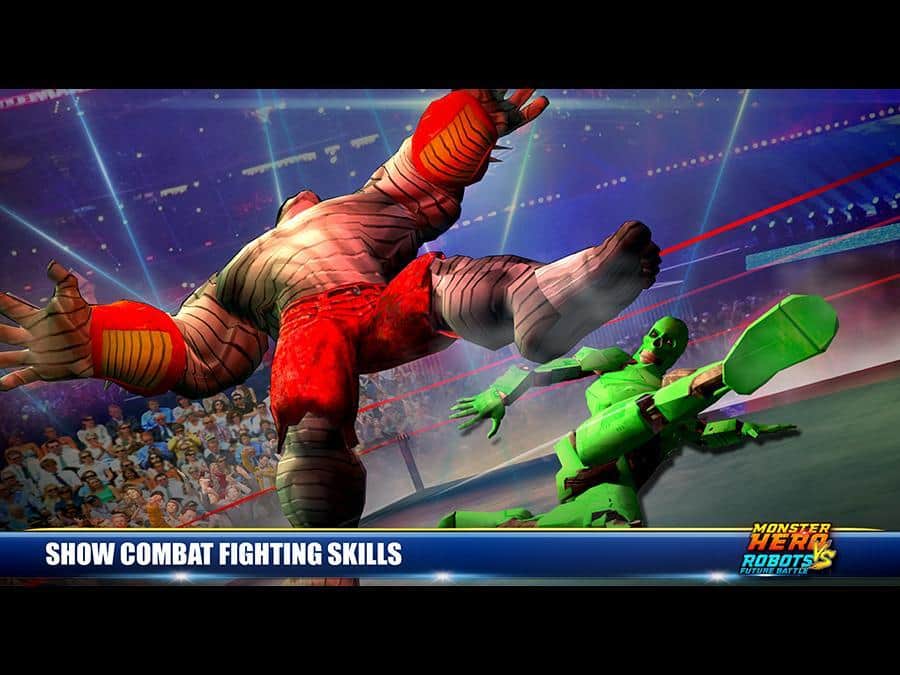 Monster Hero vs Robot Future Battle – возьмите под свой контроль отважного супергероя и встретьтесь в нелегком поединке, с боевым роботом. Выбирайте себе героя из многочисленных представленных в игре персонажей, начиная от супергероев и заканчивая сильными бойцами, обладающими супер способностями и боевыми приемами. Выходите на ринг и сражайтесь с многочисленными роботами, которых не так просто будет победить. Применяйте боевые умения своих героев и сокрушайте сильных врагов. Открывайте для себя новых героев, которые порадуют вас уникальным внешним видом и способностями.