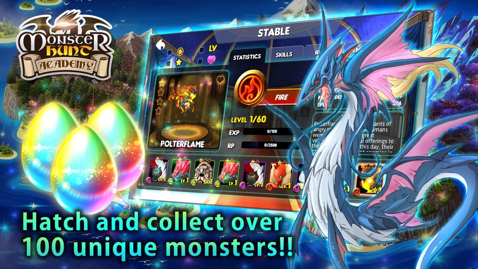 Monster Hunt Academy – отправляйтесь в увлекательное путешествие в фантастический мир, где вы будете выступать в роли ученика магической академии. В этой игре вы будете восстанавливать равновесие в мире, который пострадал от магической войны. Магия покинула этот мир и осталась жить в различных монстров. Вашей задачей будет приручать диких монстров и сражаться с врагами применяя их возможности и умения. Командуйте армией монстров и бросайте вызов, реальным игрокам сражаясь на арене. Собирайте ценные трофеи после удачных боев и открывайте для себя новых монстров. Играйте с друзьями и добивайтесь отличных результатов.