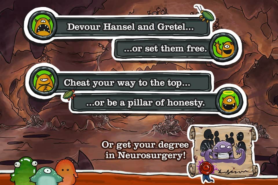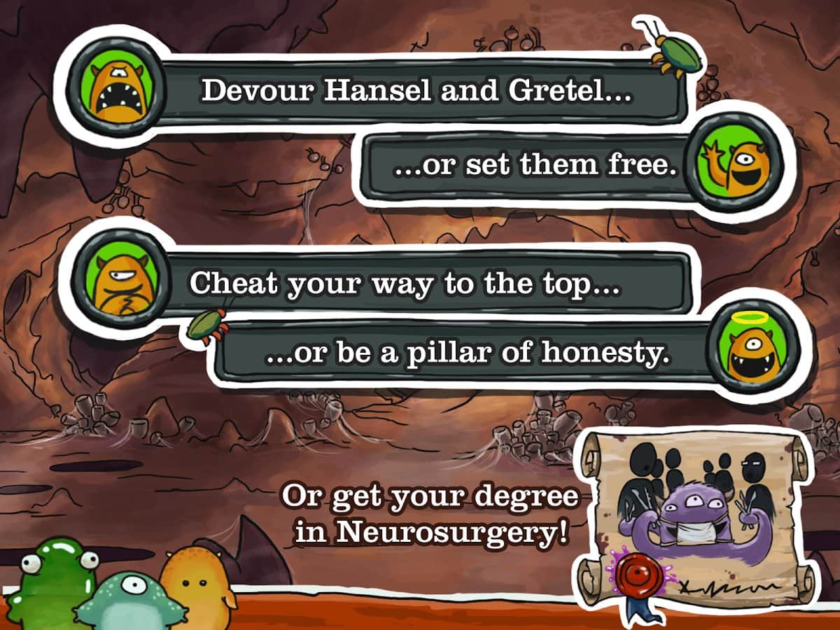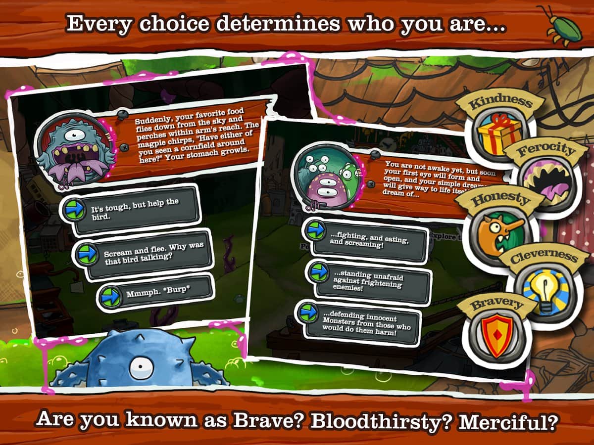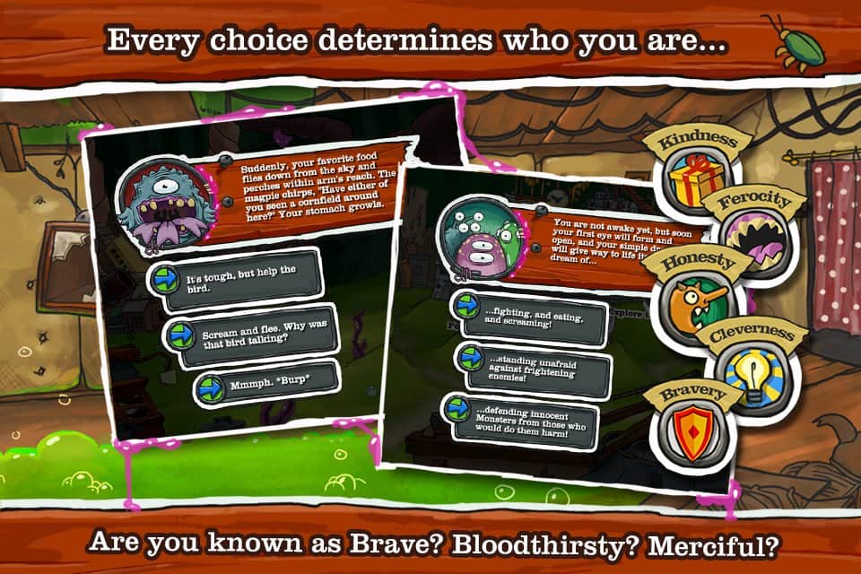 Monster Loves You - игра на андроид, в которой вы будете жить жизнью монстра, и будете решать что вам съесть сегодня. Какое решение вы выберете применить доброту либо злость, ум или уважение к персонажам игры будет определять вашу личность, как положительного или отрицательного героя. Что вы выберете, будет зависеть только от вас.