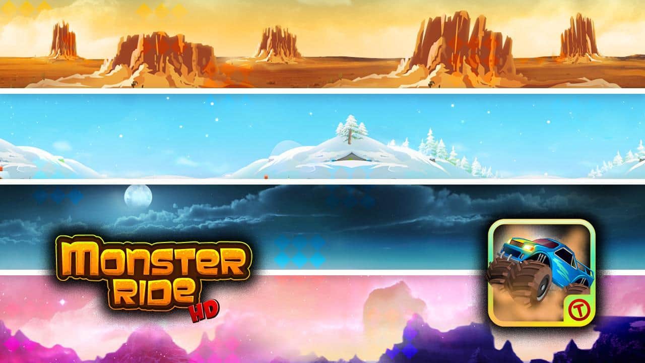 Monster Ride HD - игра на android, для любителей погонять - это находка. Сделайте вызов, выберете машину и погнали, делайте крутые сальто и новые трюки. Получайте бонусы меняйте их на новые машины и снова давите на газ, в поисках острых ощущений.