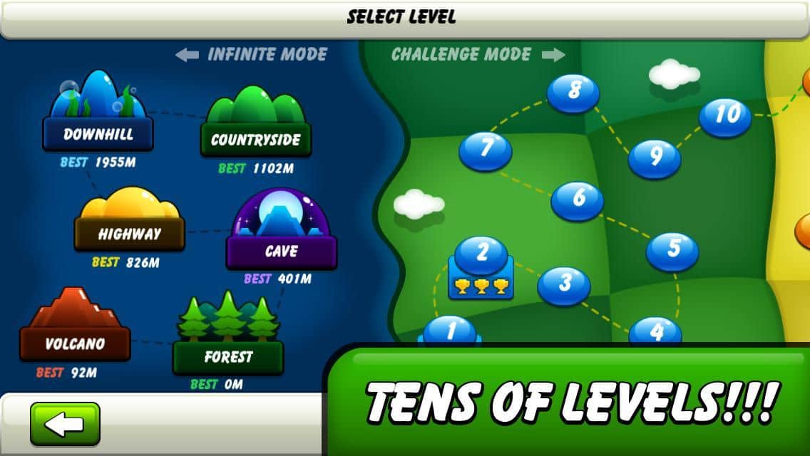 - 6 различных бесконечных карт (Сельская местность, под гору, винный погреб, шоссе, вулкан, лес)