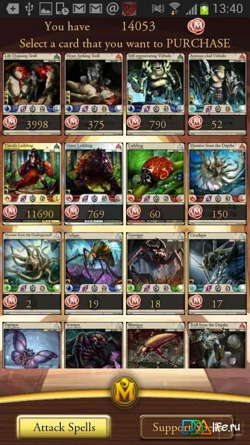 Moonga - карточная онлайн игра на андроид, в которой вы сможете сразиться в напряжённых боях со своими друзьями. В игре вас ждут более 600 магических заклинаний, большое количество оппонентов, несколько режимов игры и отличная внутри игровая атмосфера соперничества. Все карты качественно иллюстрированы и подобраны. В игре каждую неделю вас ждут увлекательные турниры с розыгрышем призов.