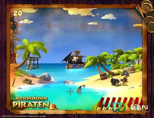 Moorhuhn Pirates - и снова Морхухоны для андроид с нами! На этот раз морская тематика, а точнее - пиратские заморочки! Динамичная аркада с оружием в руках - вы также как и всегда будете стрелять по хитрым птичкам, маскирующимся и прячущимися за разными предметами! И как всегда, время ограничено!