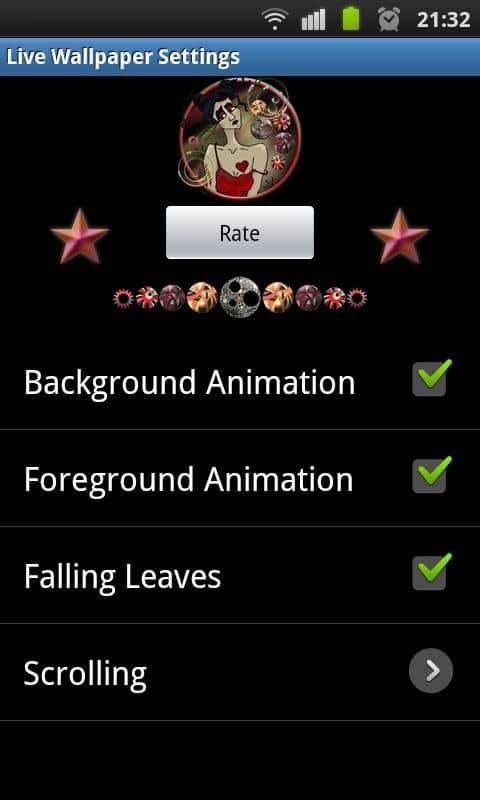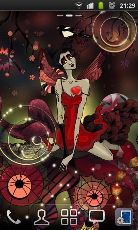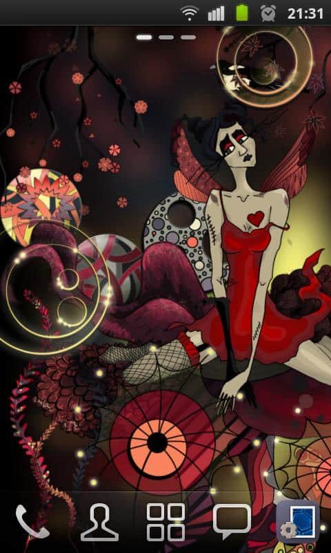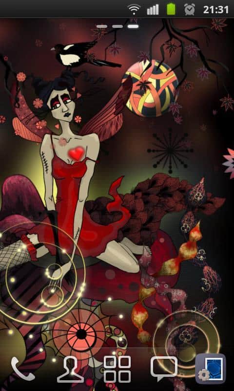 Morphine Fairy HD Wallpaper – весьма интересные живые обои на андроид, выполненные в непривычном стиле арт-нуво. Несмотря на насыщенность обоев красным цветом на них хочется смотреть не отрывая глаз. Грустная фея с красными крыльями и бьющимся сердцем в груди, придаст экрану вашего устройства таинственности и загадочности. В настройках можно выбрать вид прокрутки экрана, включить анимацию заднего и переднего фона, падающие листья и многое другое.