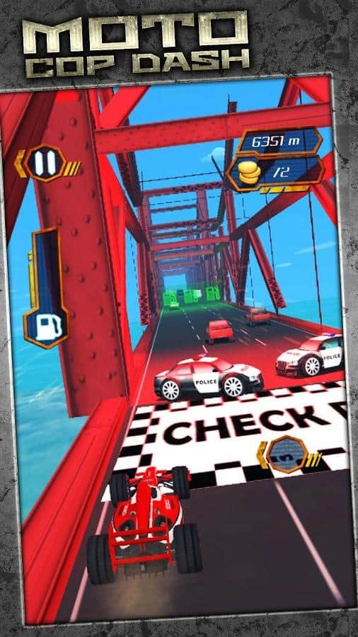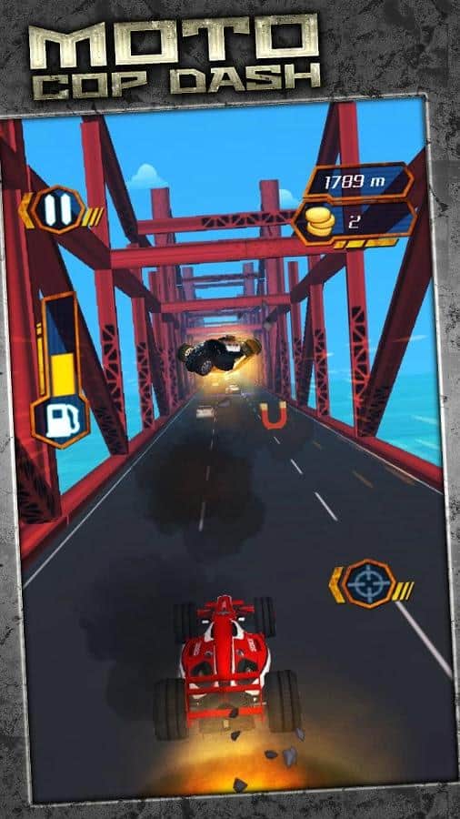 Moto Cop Dash – аркадные гонки на андроид, где вам предстоит управлять гоночной машиной. Гоняйте на огромной скорости по оживленным трассам и обходите все машины, избегая столкновения с ними. Из-за нелегальных гонок по городским улицам и трассам, вам не избежать полицейских погонь. Так что приготовьтесь к безумным скоростям и нарушению правил дорожного движения. Давите педаль газа в пол и гоняйте по дорогам, передвигаясь в бесконечном потоке машин пытаясь оторваться от преследования. Также настойчивые полицейские могут перекрыть вам дорогу, если такое случиться, то взрывайте полицейские машины с помощью своего оружия.