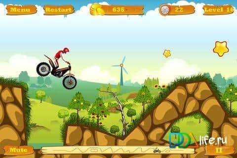 Moto Race - это мото-гонки, основанные на физике движения. На вашем пути - множество препятствий и ооочень неровная трасса, которую нужно преодолеть, собрав монетки по дороге и не свалившись с мотоцикла. Кроме этого, вы можете совершать сложные трюки, чтобы заработать высокий рейтинг и показать свои достижения в Game Center. Вперед, много опаснейших треков ждут вас!