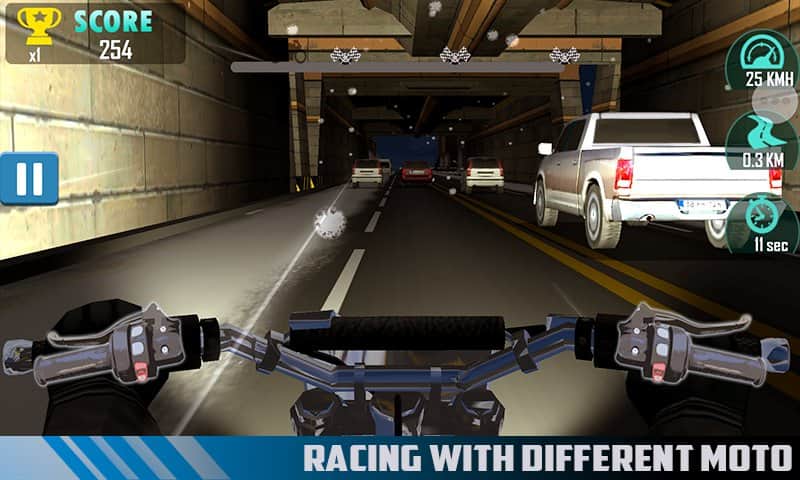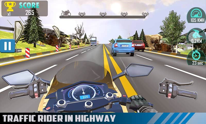 Moto Racing: Traffic Rider – гоняйте на своем мотоцикле по извилистым трассам игры и выполняйте различные трюки. В этой игре вы будете гонять по улицам огромного мегаполиса, загородным шоссе и подземным туннелям. Разгоняйте свой мотоцикл до предельной скорости и покажите на деле свои отличные навыки вождения. С помощью акселерометра управляйте передвижением мотоцикла и наклоняйте свой девайс в разные стороны, чтобы лавировать в потоке бесконечного трафика. Выполняйте все задания и проезжайте как можно ближе к встречным машинам, получая за это дополнительные очки. Открывайте для себя новые мотоциклы разных моделей.