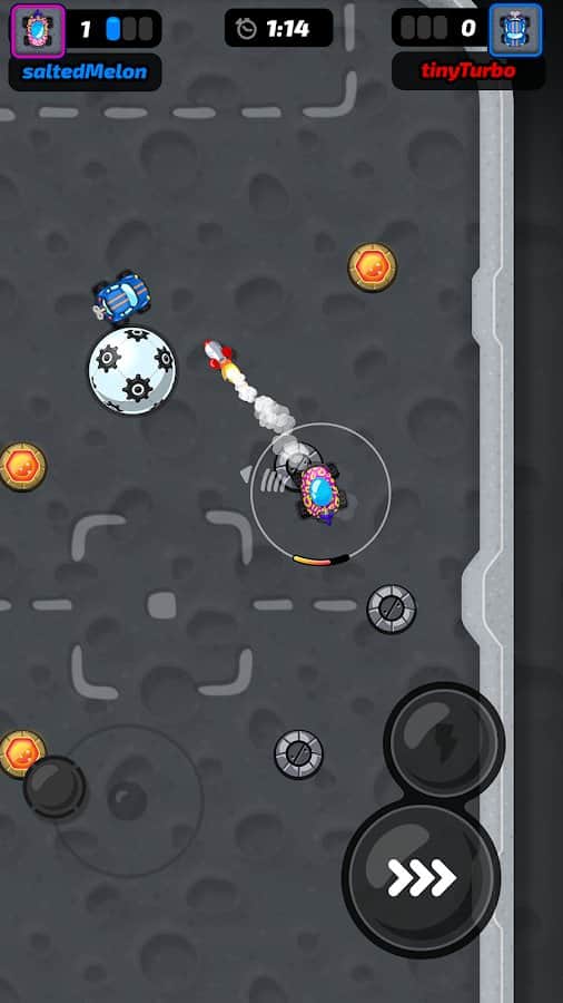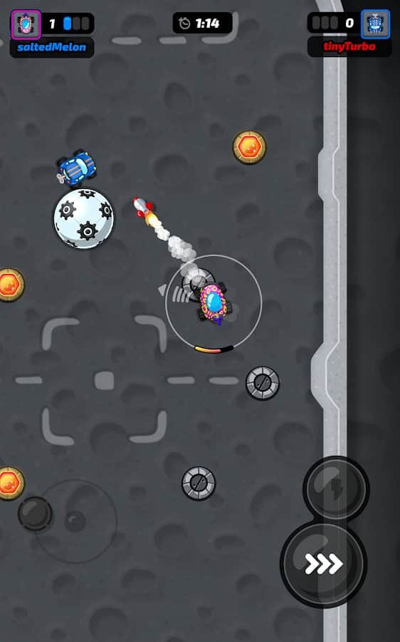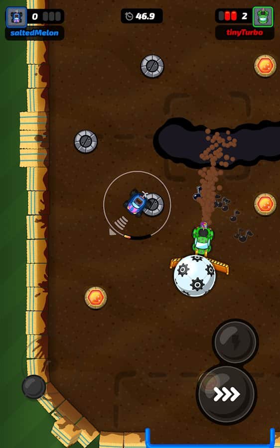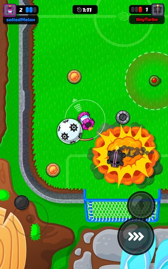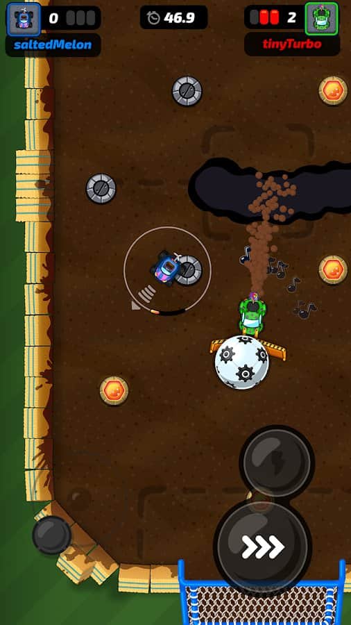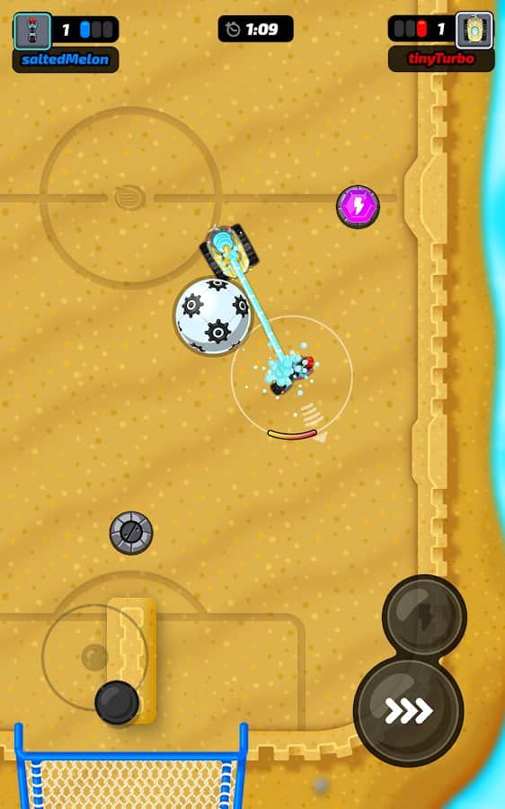 Motorball – игра для любителей футбола. Вы сможете наслаждаться процессом в любом месте со своего смартфона, только в прокаченном варианте. Садитесь за руль автомобиля и выезжайте на специальное игровое поле. Это мотобол! В качестве игроков будут автомобилисты. Развивайте нужную скорость и резко уходите в повороты, играйте с другими пользователями и устройте жесткое соревнование. Выбирайте тачку, измените ее цвет, заработайте достаточно денег, чтобы улучшить ее комплектующие и стать лучшим игроком в команде.