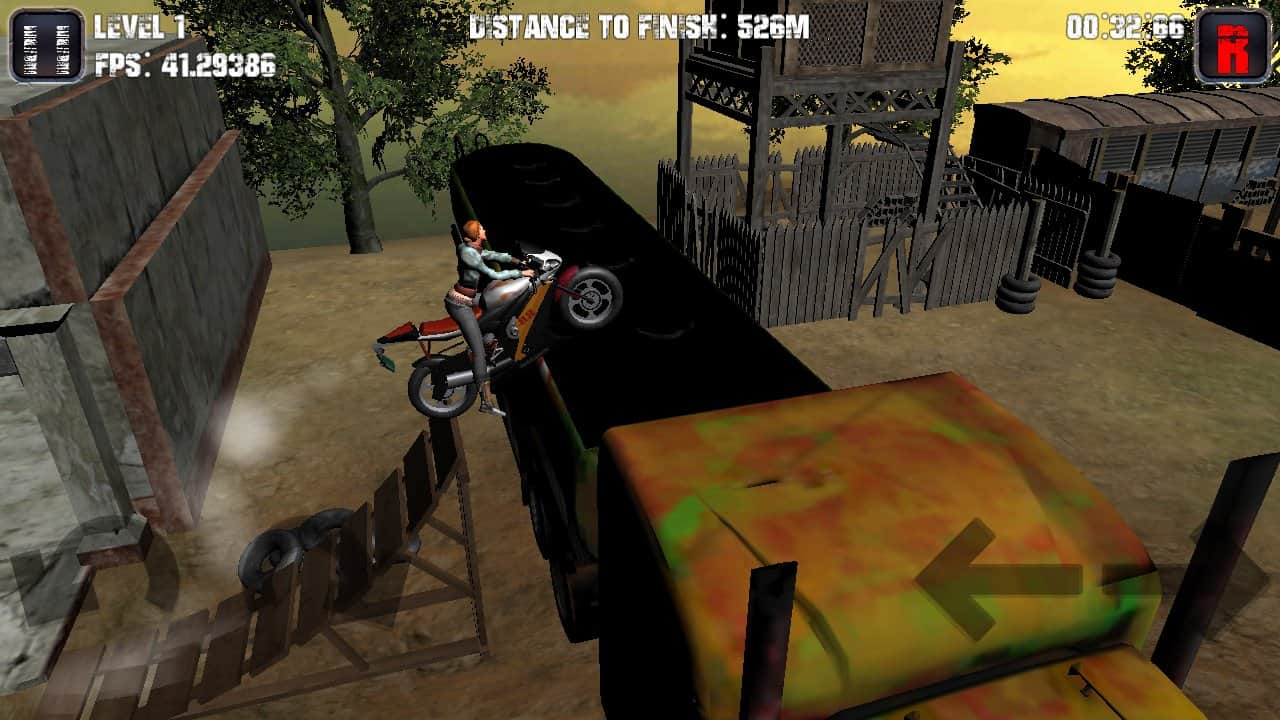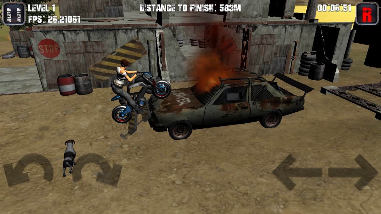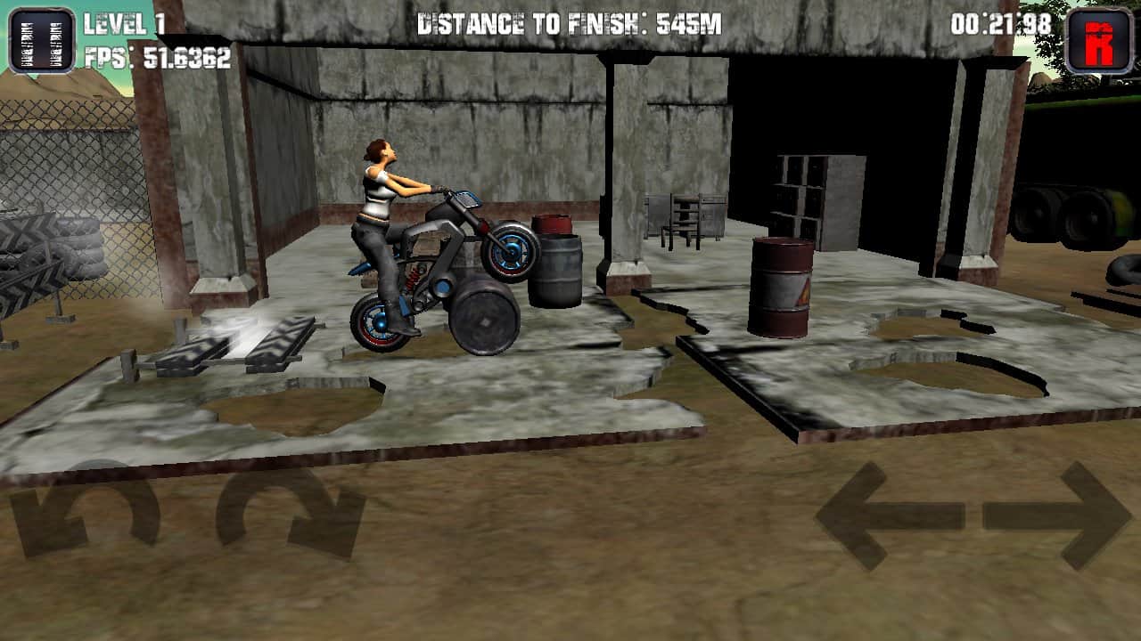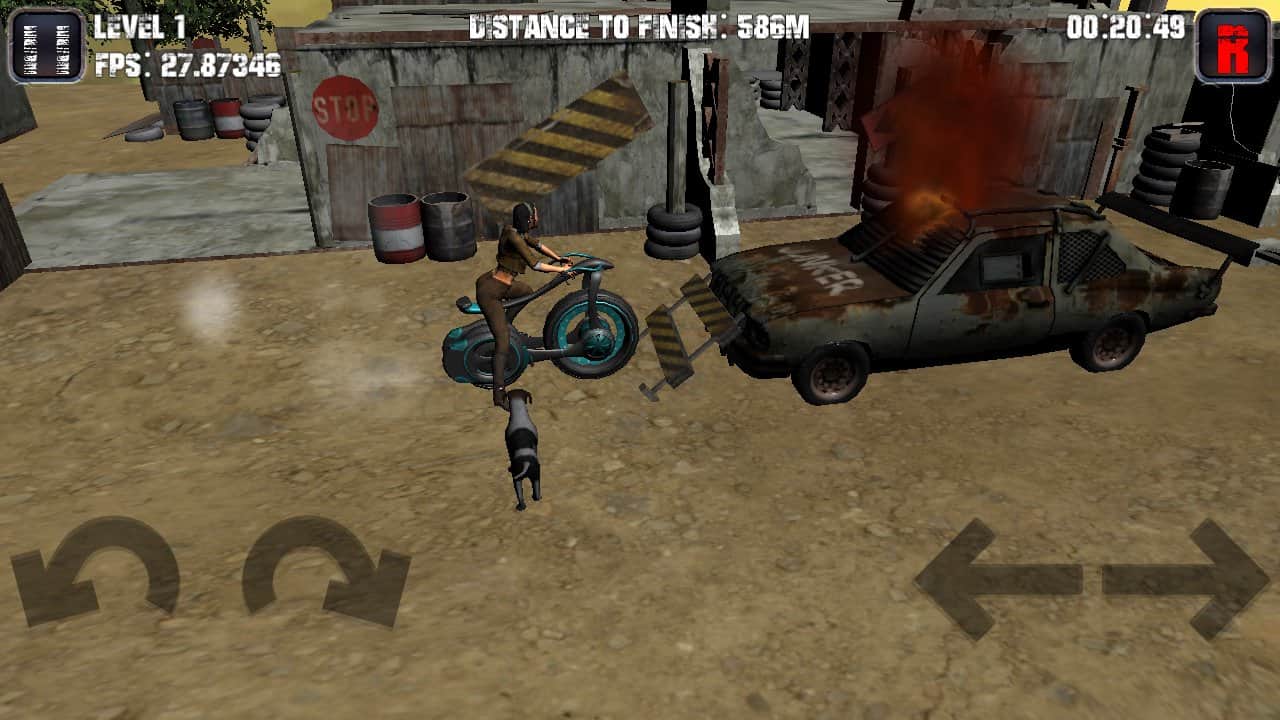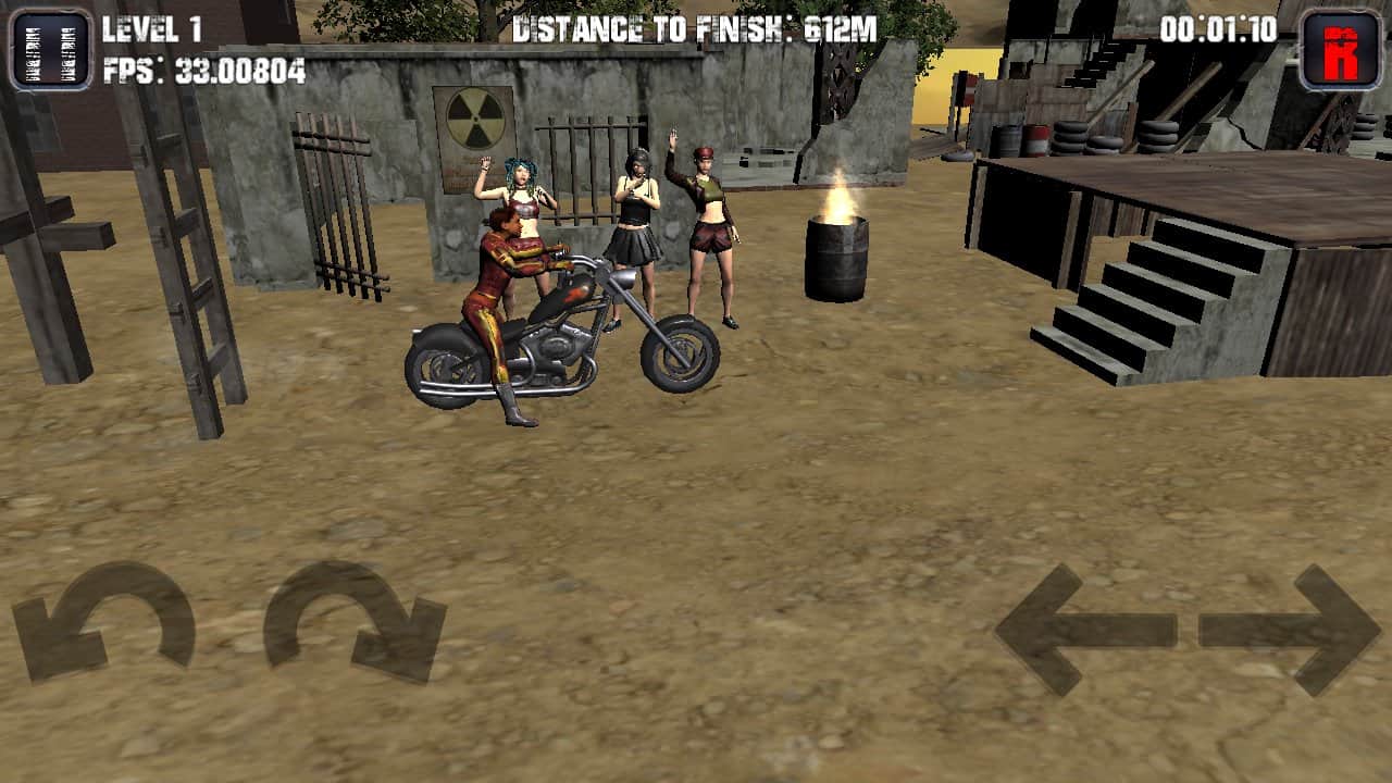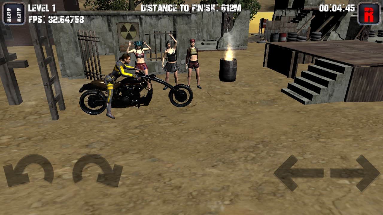 Motorcycle game – увлекательная игра на андроид, где вы возьмете под свой контроль мощный мотоцикл и проведете его по многочисленным опасным локациям. Вашей главной задачей в этой игре будет двигаться вперед, и преодолевать многочисленные препятствия за минимальный промежуток времени. Впереди вас ждут разнообразные локации такие как: каменные холмы, разрушенные дома и спуски и подъемы на лестницы. С каждым новым уровнем сложность игры будет увеличиваться, что добавит вам больше интереса к игре. Проходите контрольные точки и продолжайте игру с того места где закончили.