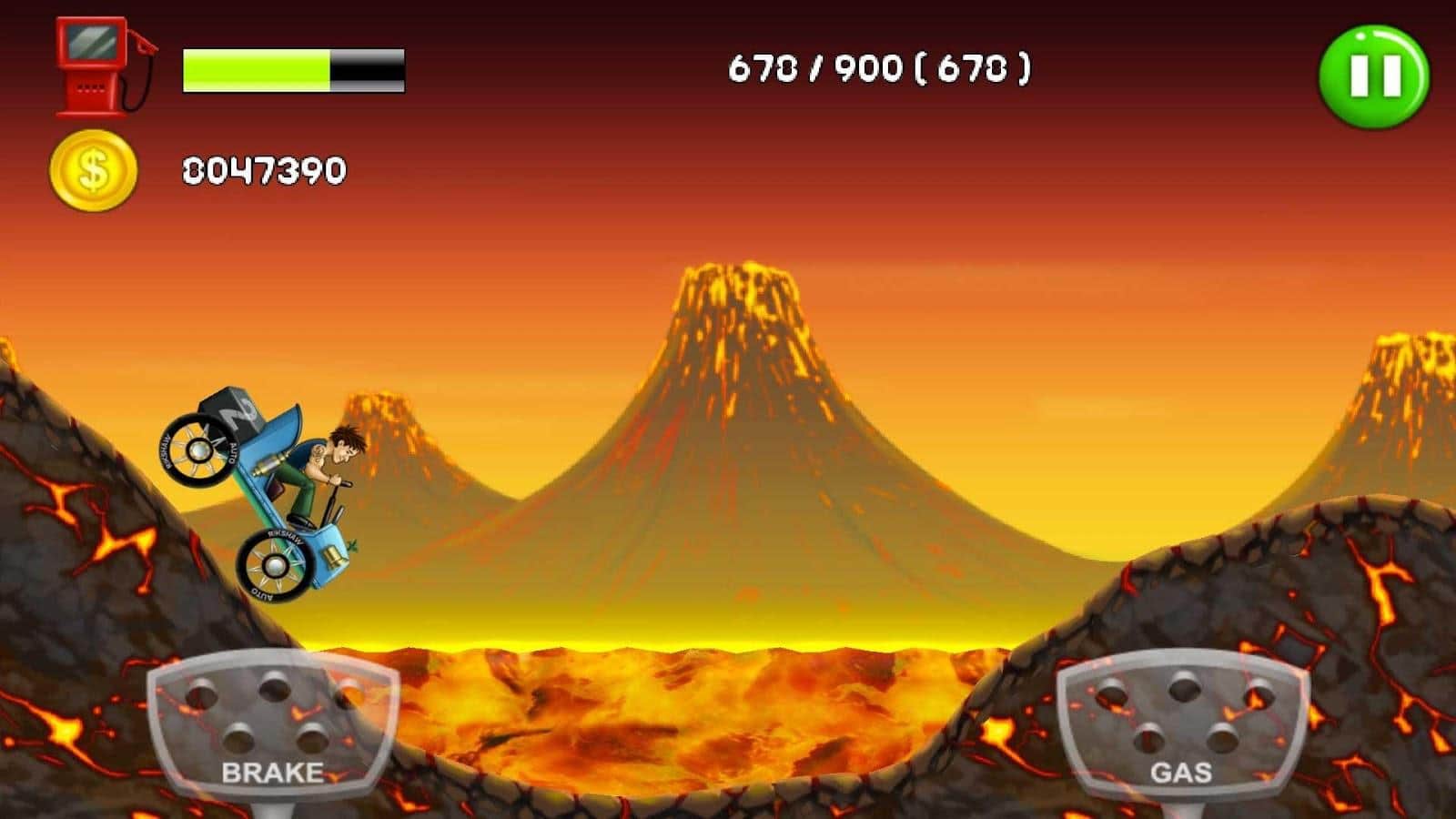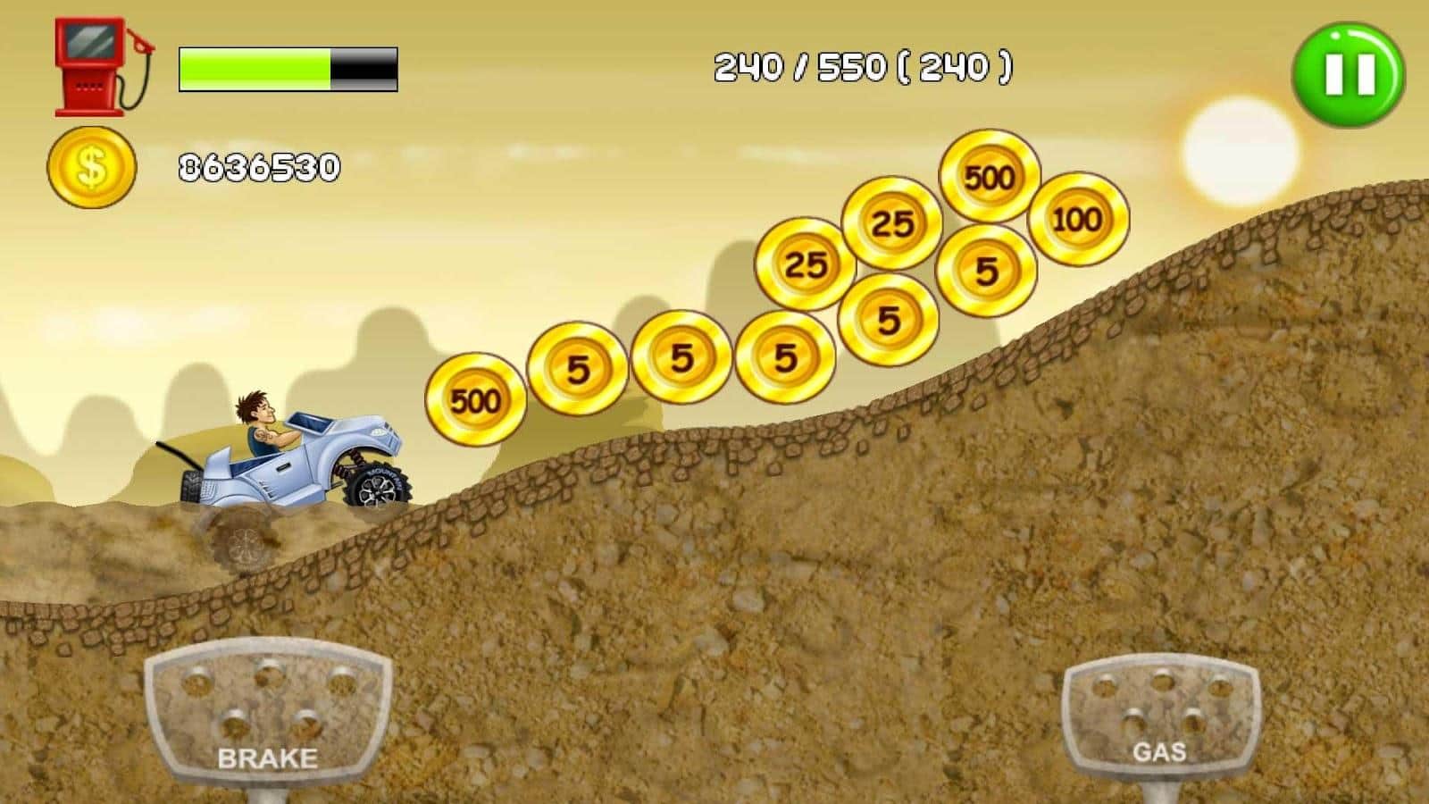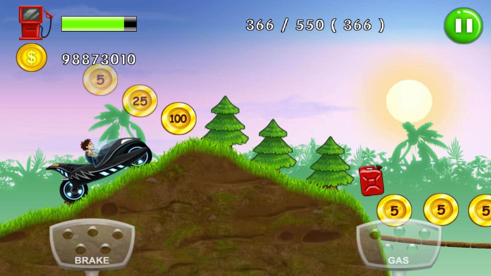 Mountain Up Hill Climb Race - отличные аркадные гонки сильно напоминающие популярную игру Hill Climb Racing. В вашем распоряжении даётся машина. На которой вам необходимо проехать как можно дальше попутно собирая бонусы и монетки, на которые в последствии можно купить новые тачки. В игре вы прокатитесь на обычных машинах, пронесётесь с ветерком на престарелом мотороллере, грузовичок тоже не останется в стороне. А как здорово мчаться на транспортном средстве на воздушной подушке. Разнообразие уровней вас приятно удивят: кипящая лава, ночные поездки и даже немыслимые гонки на далёкой планете.