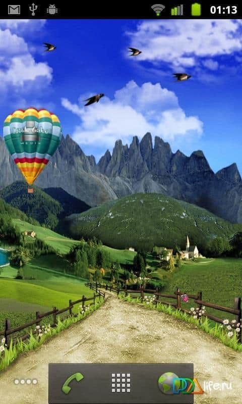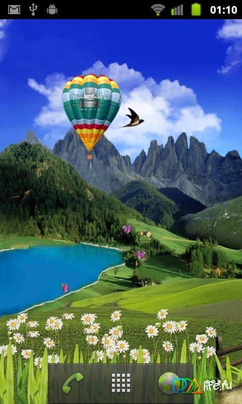 Mountain Weather LWP - красивые пейзажные живые обои для андроид устройств, скачав и установив которые на экран своего устройства, вы перенесетесь в замечательное место где-то в горах. Словно стоя на дороге перед вами открывается прохладное озеро, величественные горы, небольшая деревушка и большое количество цветов, над которыми порхают бабочки. По небу пролетают птицы и можно увидеть воздушный шар. Стоит отметит, что данные обои замечательны еще тем, что передают погоду за вашим окном, можно изменять время дня, тип цветов, самостоятельно устанавливать фазу луны, погодные условия и многое другое. Приятного пользования!