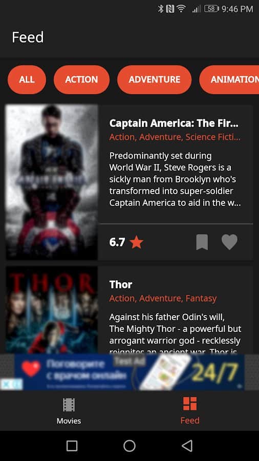 При помощи приложения Moviex можно смотреть те фильмы, которые вам рекомендует само приложение, основываясь на списке Избранных кинокартин. Для создания персонального перечня и получения рекомендаций нужно всего лишь поставить лайк понравившемуся фильму в Ленте. Здесь можно ознакомиться с подробным описанием кино, найти его по названию или использовать сортировку по жанрам. С этим удобным приложением не возникнет вопроса о том, что посмотреть вечером или в выходной день.