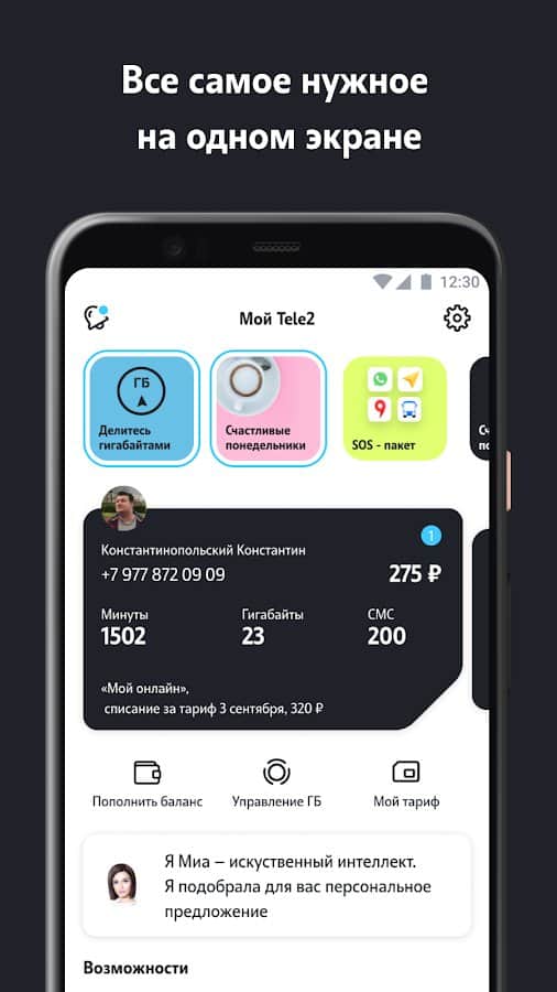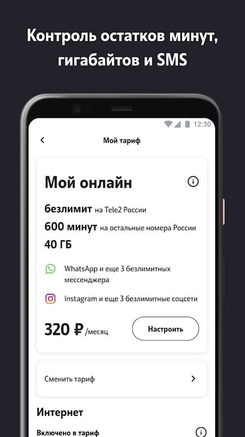 Мой Tele2 - Контролируйте собственные расходы через телефон! Подключите карту, создайте аккаунт и пользуйтесь всеми функциями для получения полезных данных, которые включают в себя самое необходимое. Подключите или отключите платные услуги, настройте персональный тариф, анализируйте остаток собственных минут и интернета, просматривайте все расходы по категориям и получайте ценные подарки, скидки, промокоды или кэшбэки. Сделайте обслуживание собственного номера телефона удобным, легким, понятным для использования.